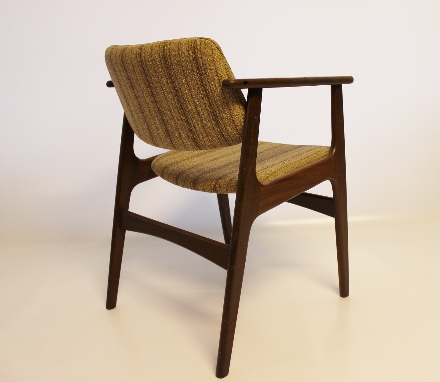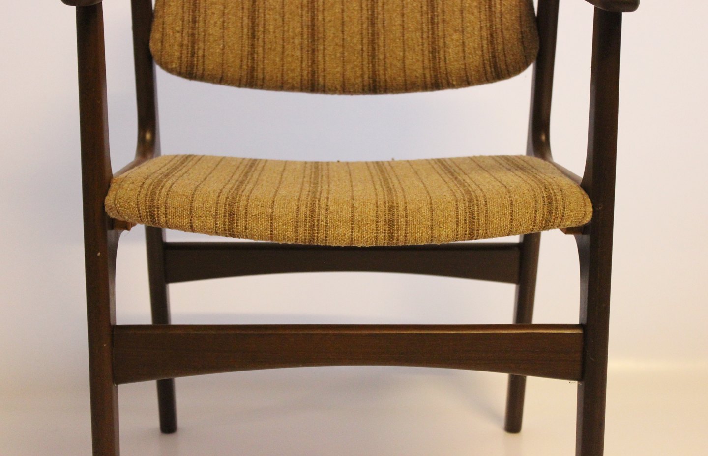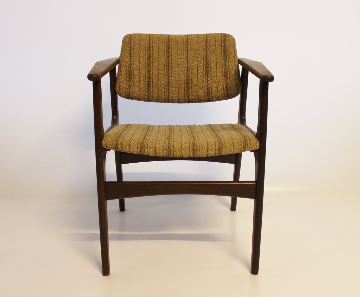 SoldA set of four armchairs in teak and upholstered with striped fabric, designed by Erik Buch and from the 1960s. The chairs are in great vintage condition.