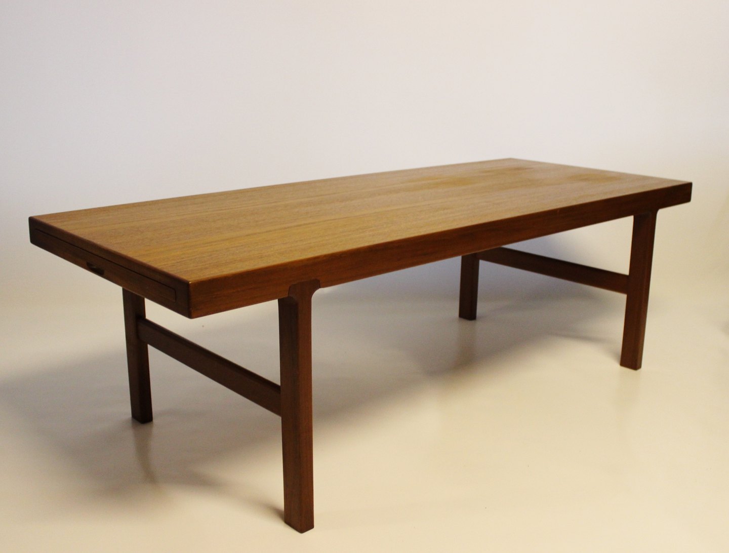 SoldCoffee table in teak with black extension leaf of danish design from the 1960s. The table is in great vintage condition.