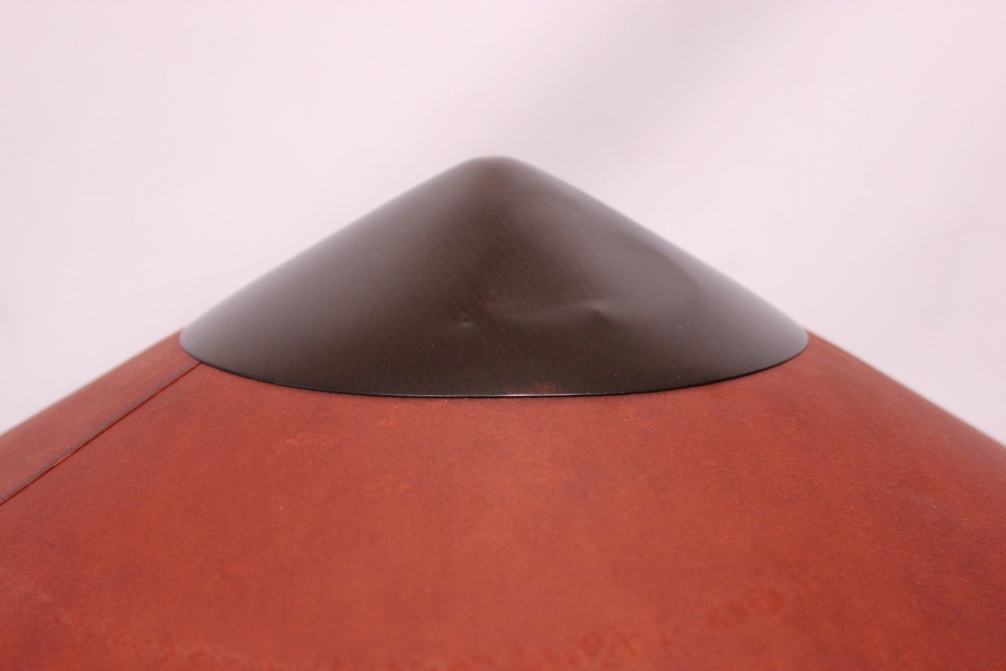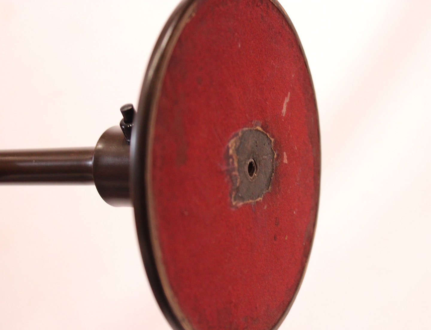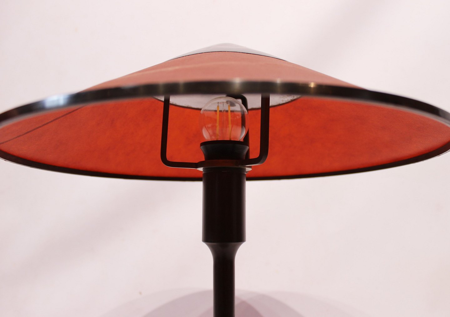 Kongelys bordlampe af Fog og Mørup af rav farvet skærmplast og bruneret messing, 1930erne.