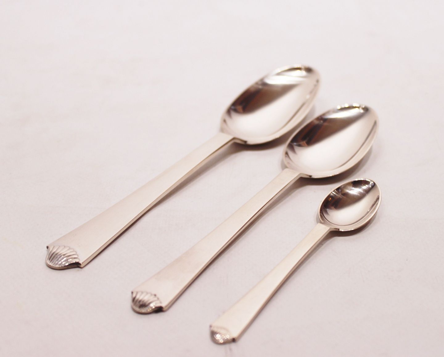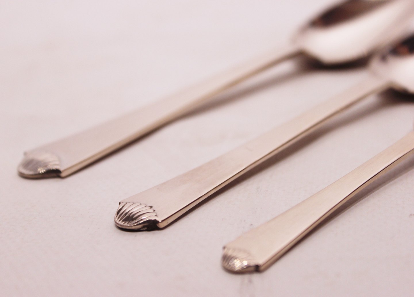 Middagsske, dessert ske og teske i Arvesølv nr. 4 af Hans Hansen.