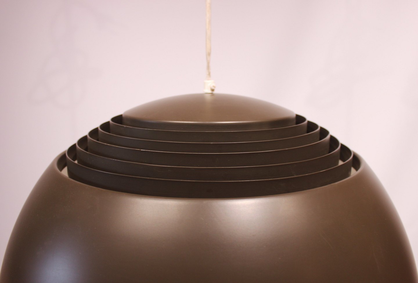 SoldCeiling pendant, model AJ Royal 500, designed by Arne Jacobsen and manufactured by Louis Poulsen. The lamp is dark grey and in great vintage condition.