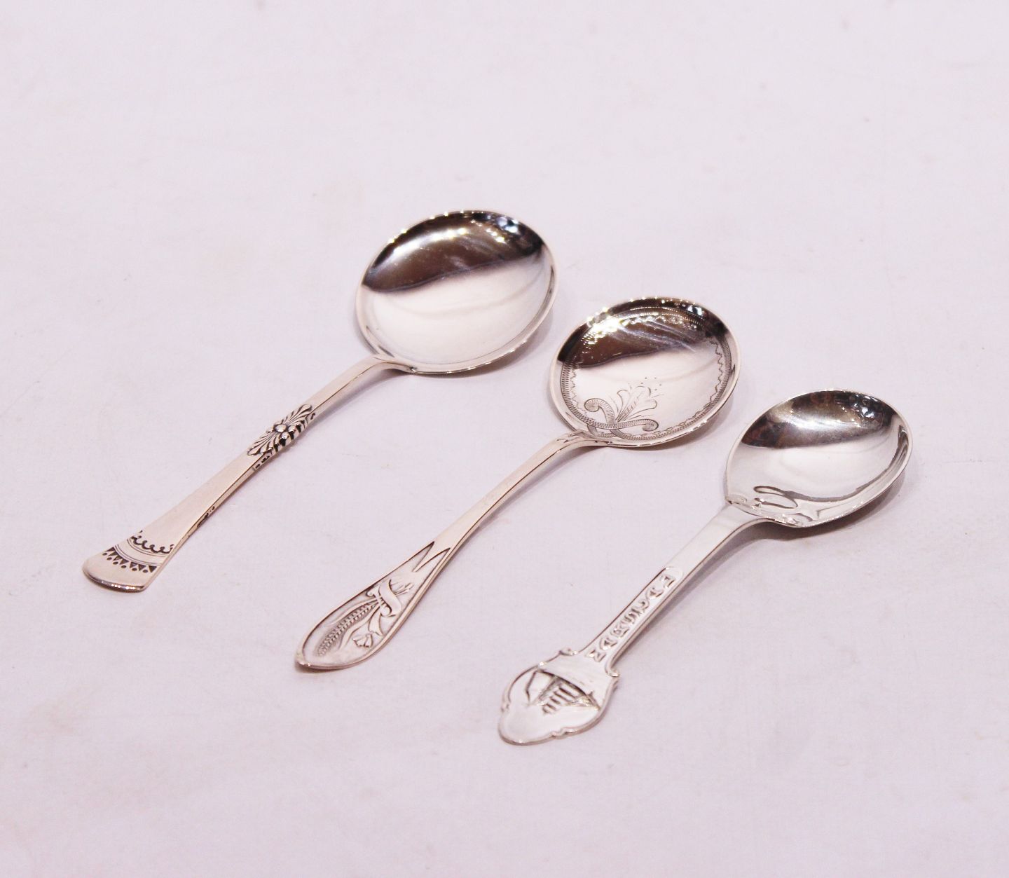 Marmelade spoons in different patterns of hallmarked silver. Ask for number in stock.
