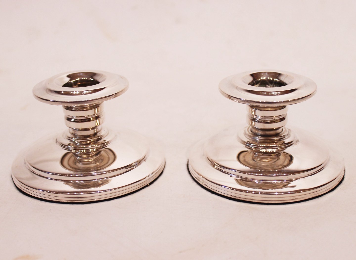 SoldA pair of low candlesticks of 830 silver and in great vintage condition.
