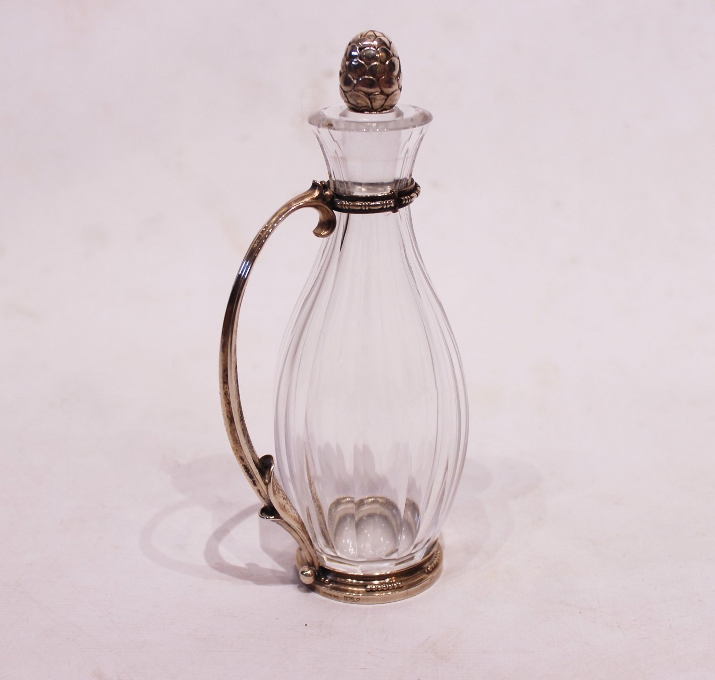 SoldOil jug of glass and 925 sterling silver by Georg Jensen. The jug is in great vintage condition and numbered 502.