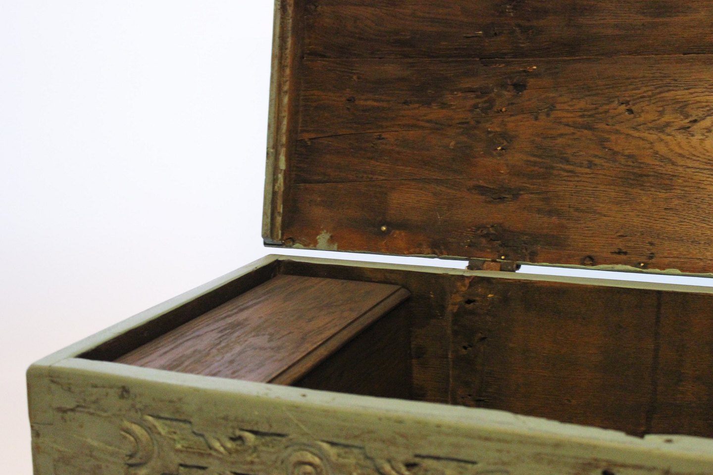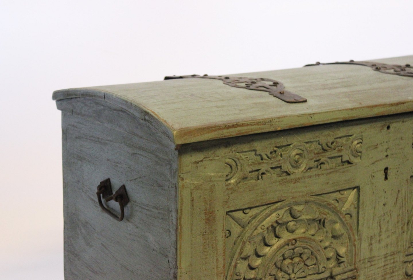 SoldAntique chest with carvings and original paint. The chest is in great vintage condition and from around the year 1740.
