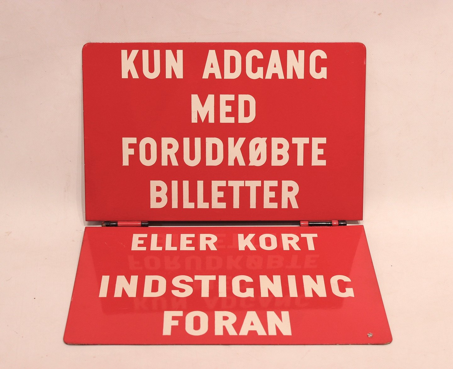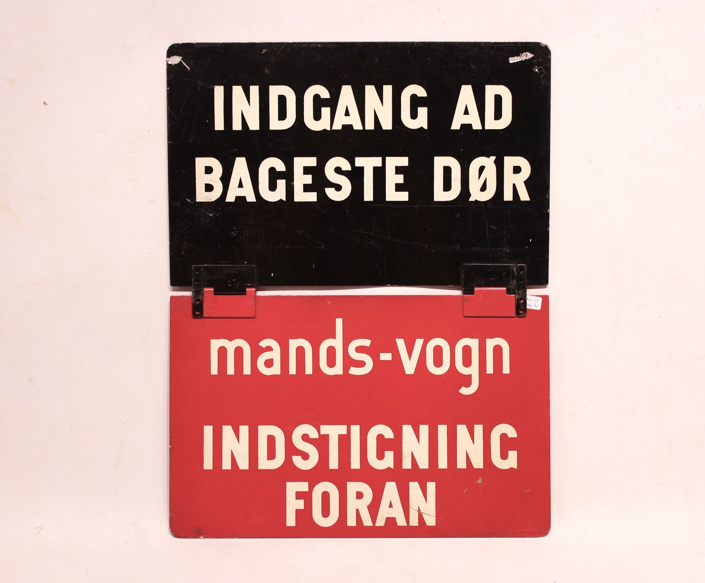 SoldAntique red and black metal sign used in busses, "entrance up front". The sign is in great vintage condition.