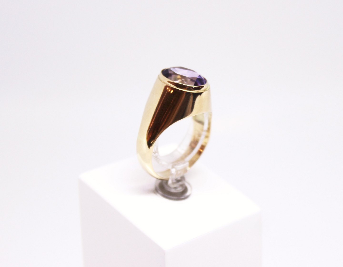Ring af 14 kt. guld dekoreret med ametyst og stemplet VASA.