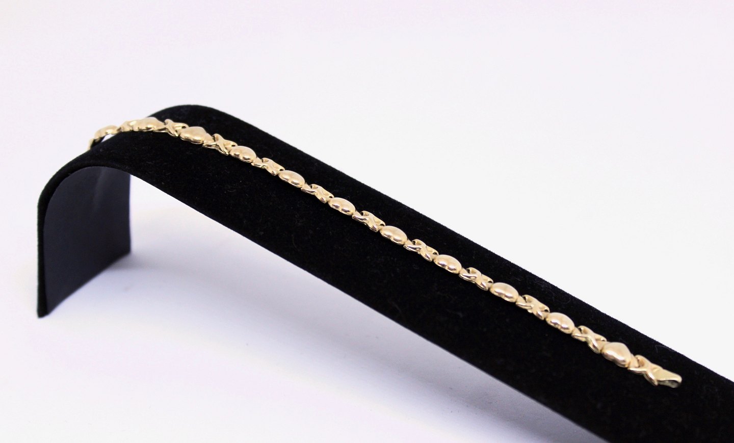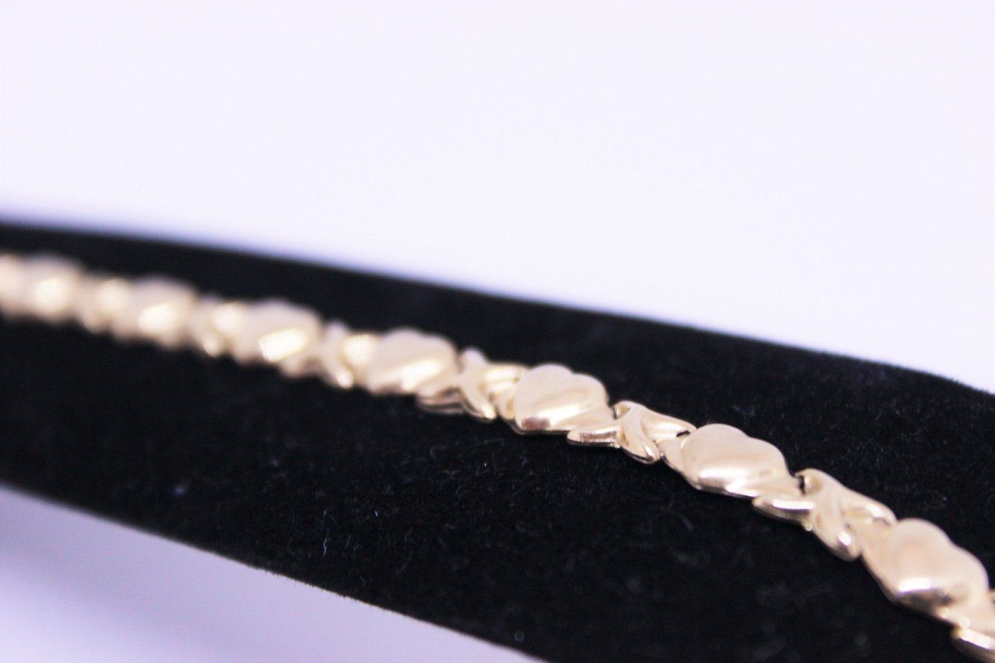 SolgtArmkæde af 14 karat guld dekoreret med hjerter og stemplet BEE.