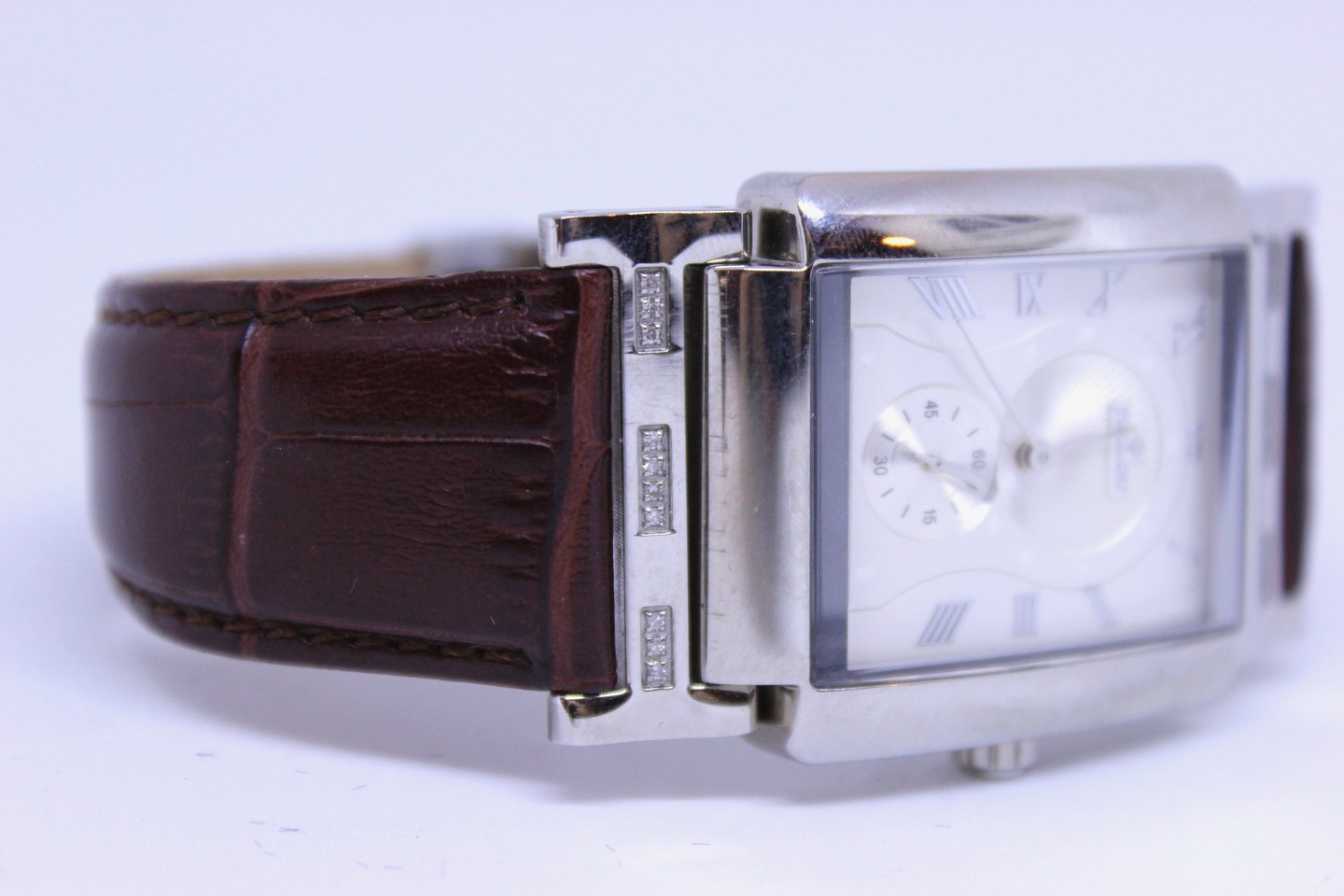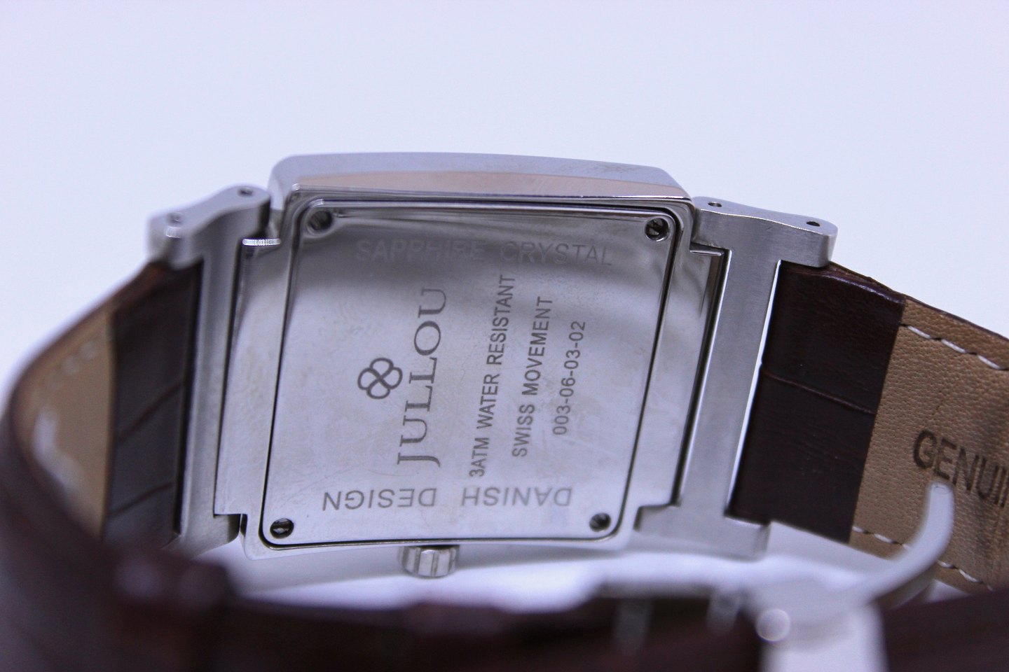 Jullou men's wrist watch with swiss quartz, case of stainless steel with 20 diamonds and with brown leather strap. The watch is in great vintage condition.