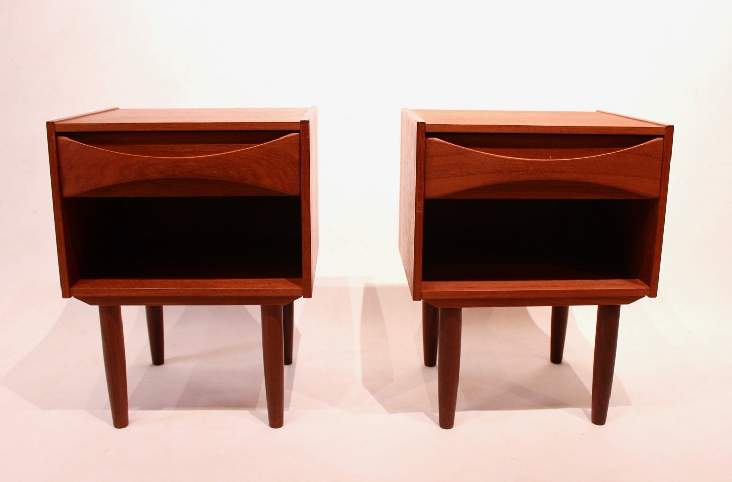 A pair of bedsidetables in teak of danish design from the 1960s. The tables are in great vintage condition.