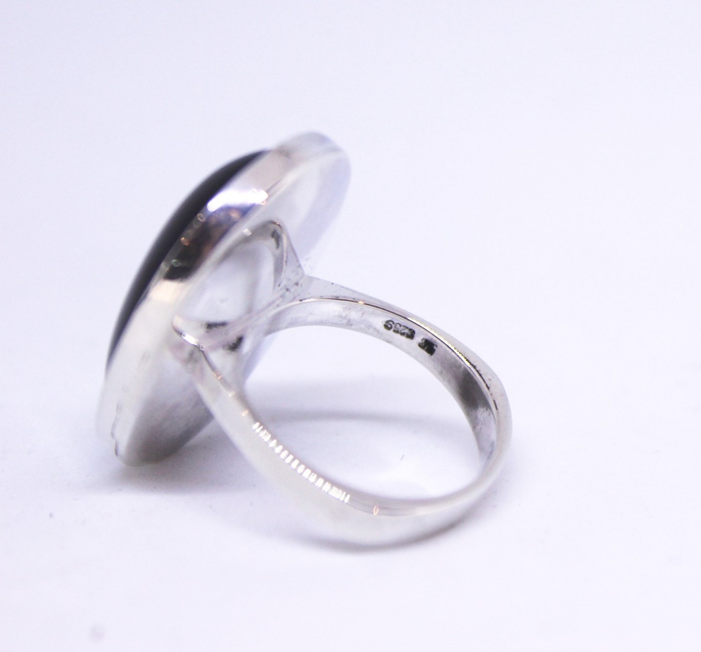 SoldRing decorated with large black onyx stone and of 925 sterling silver. The ring is in great vintage condition.