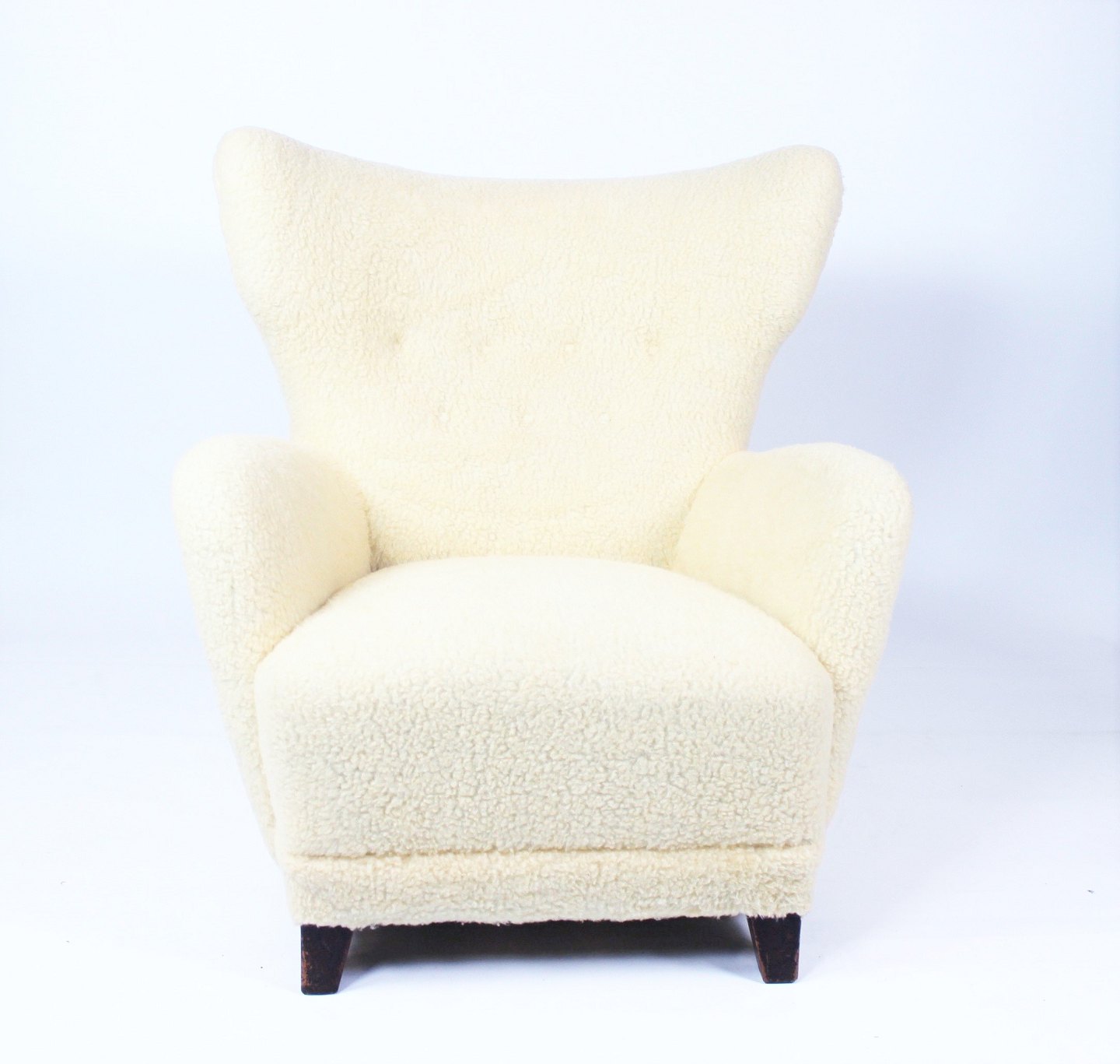 SoldEasy chair from around the 1930s and newly upholstered with sheep skin. The chair is in great vintage condition.