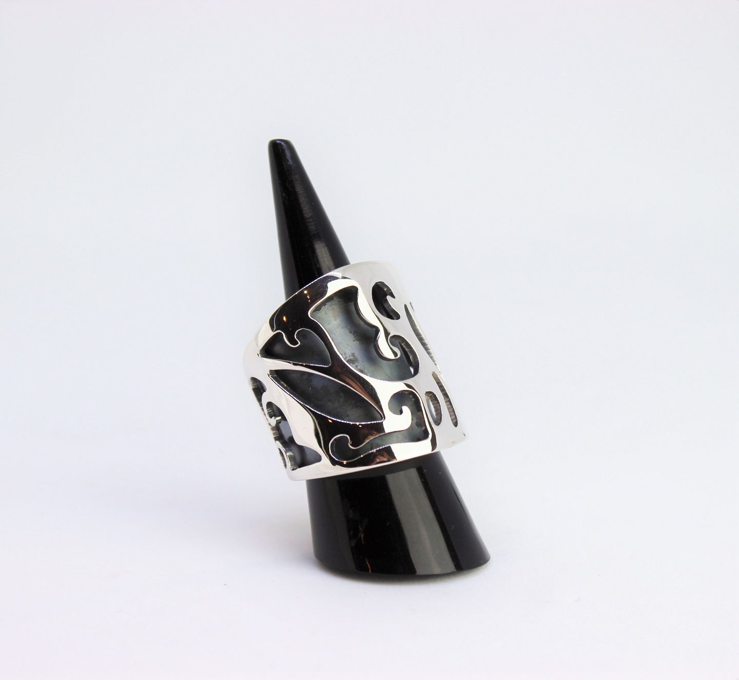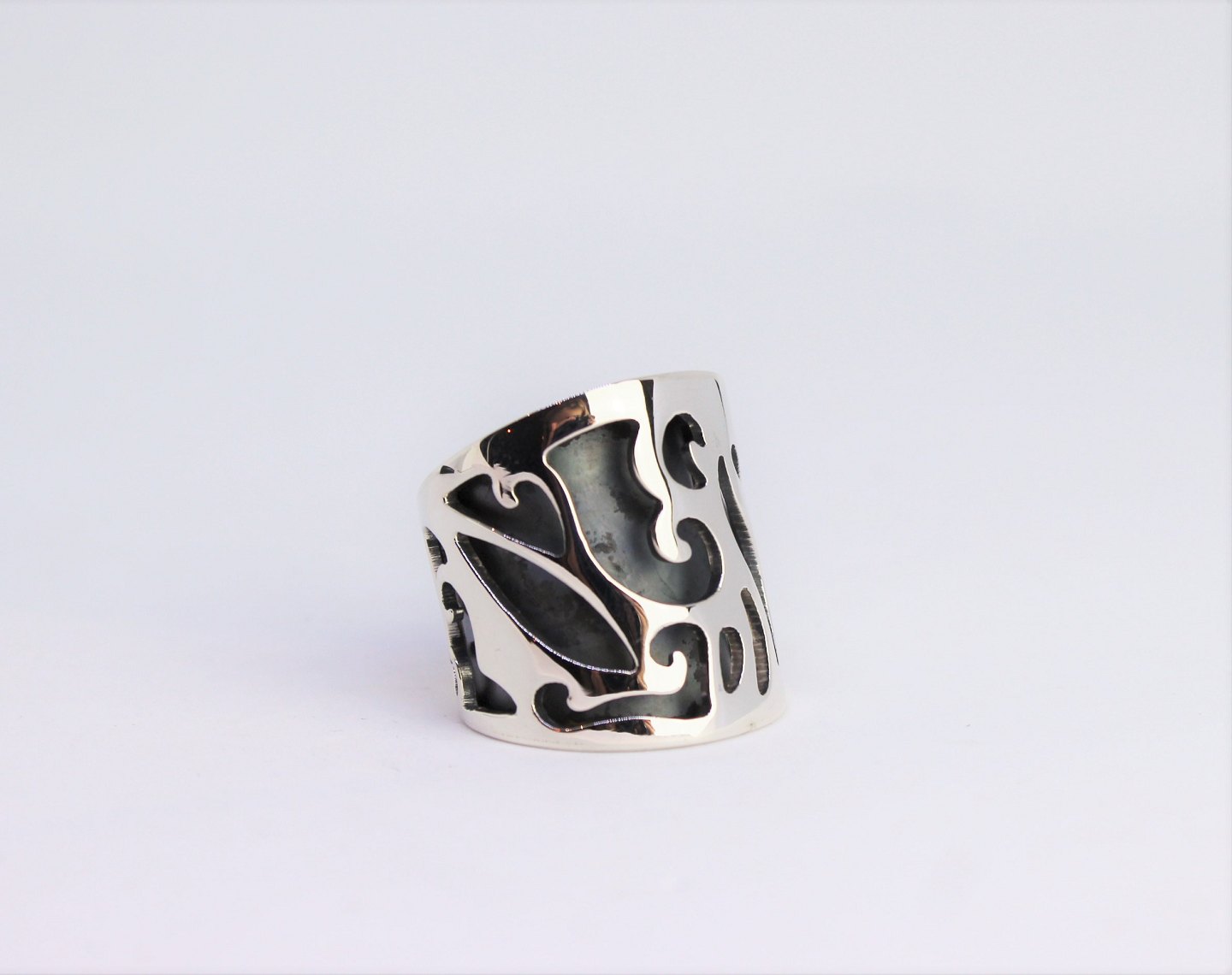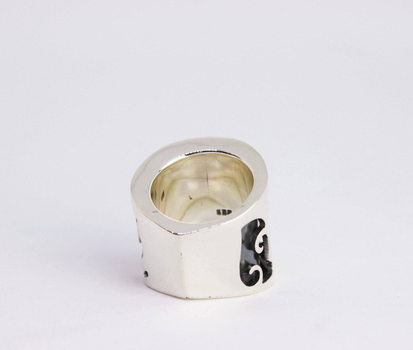 Heavy and wide ring of 925 sterling silver decorated with pattern.