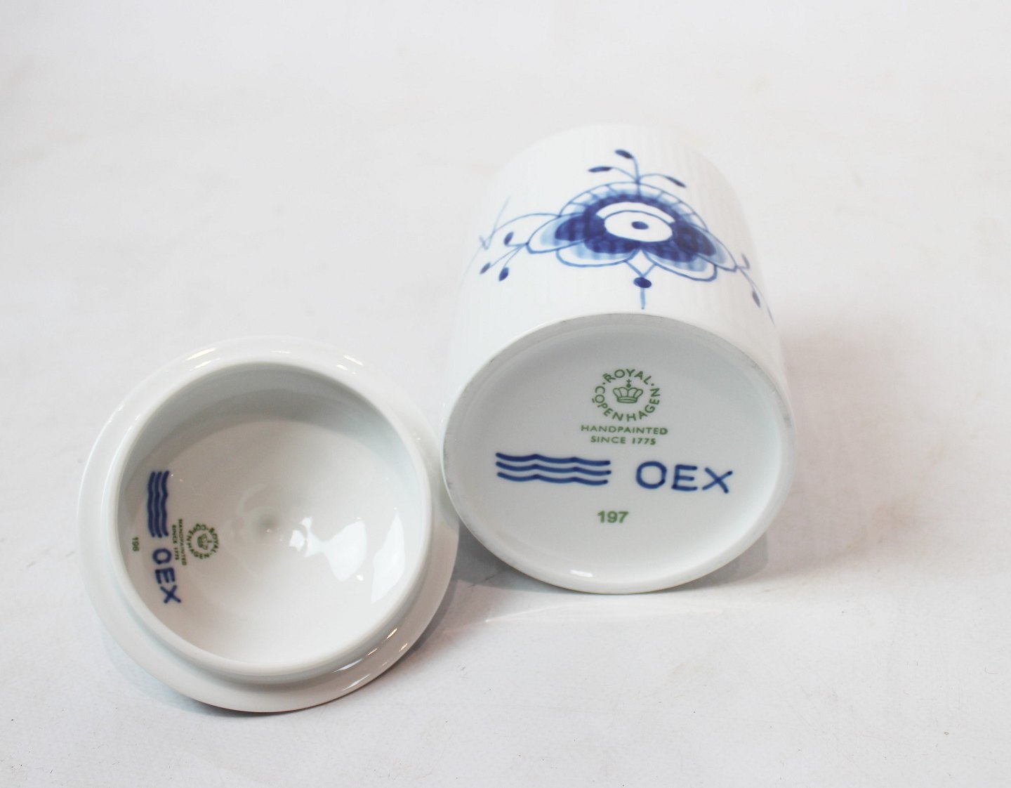 Royal Copenhagen Mega blue fluted lidded jar, no.: 197.