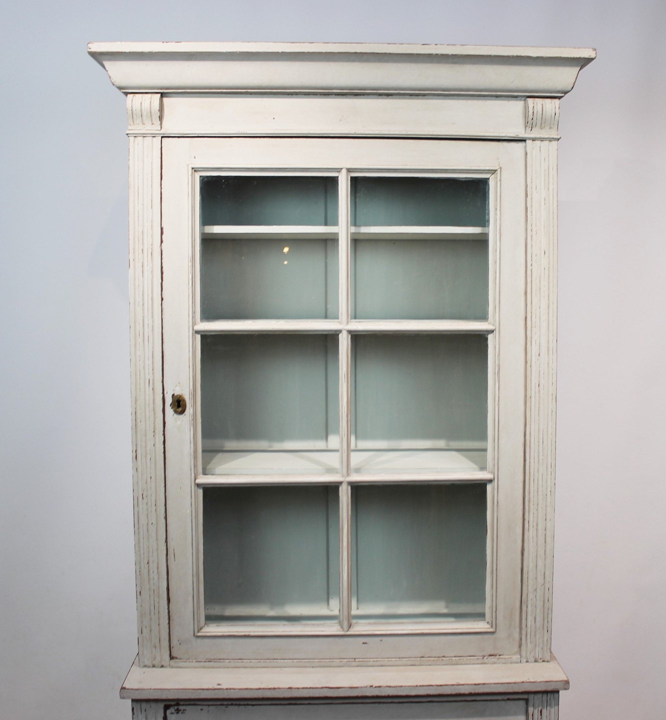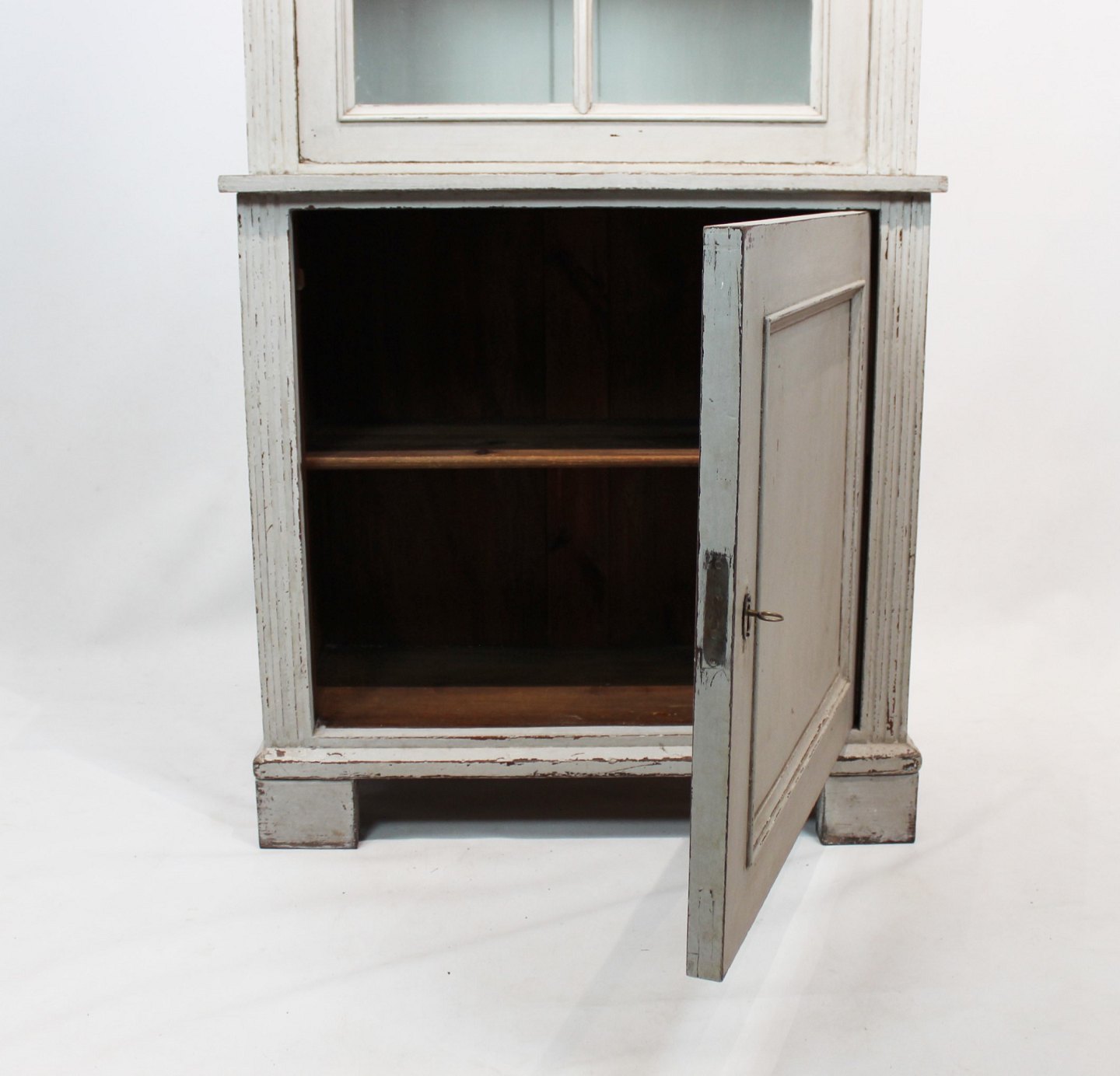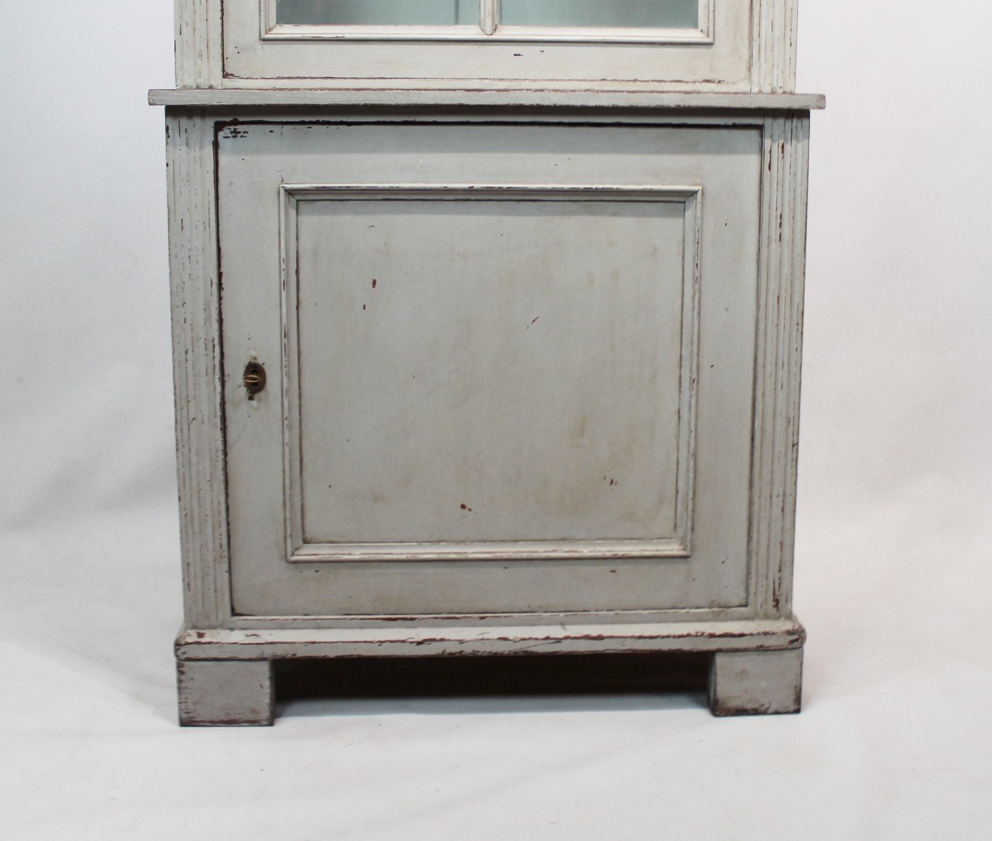 Large grey painted gustavian glass cabinet from around the 1860s, in great antique condition.