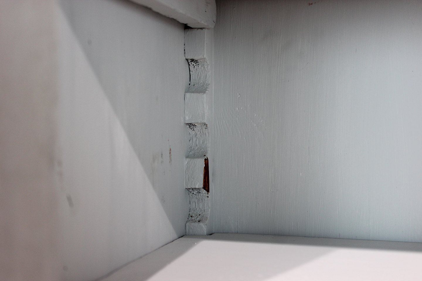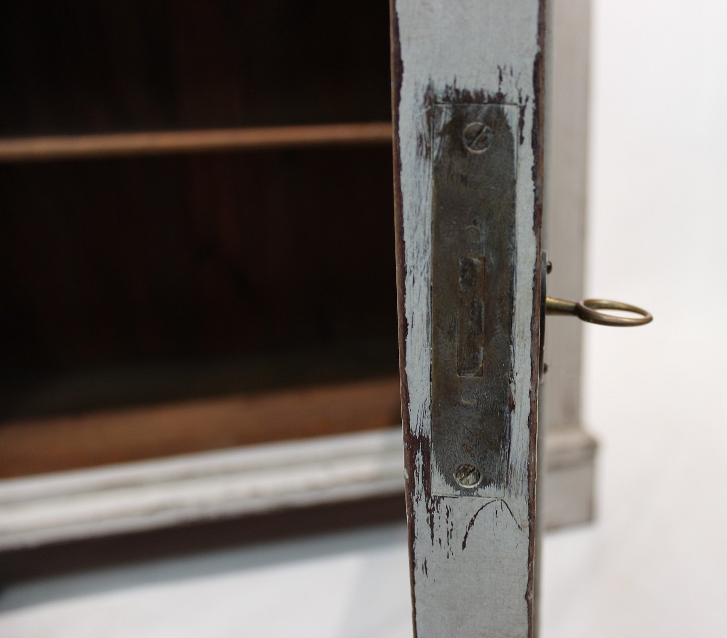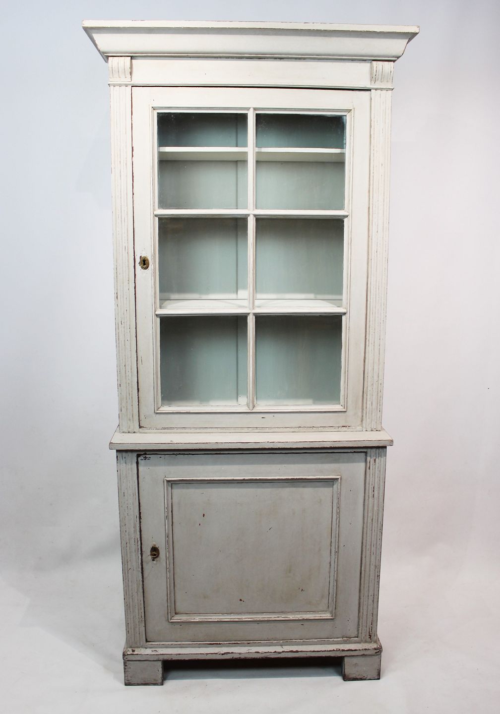 Large grey painted gustavian glass cabinet from around the 1860s, in great antique condition.