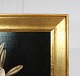 Oliemaleri med blomster motiv af I.L. Jensen skole fra omkring år 1840-1880. Maleriet er i flot stand og med guld malet træramme.