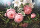 Oliemaleri med blomster motiv af I.L. Jensen skole fra omkring år 1840-1880.