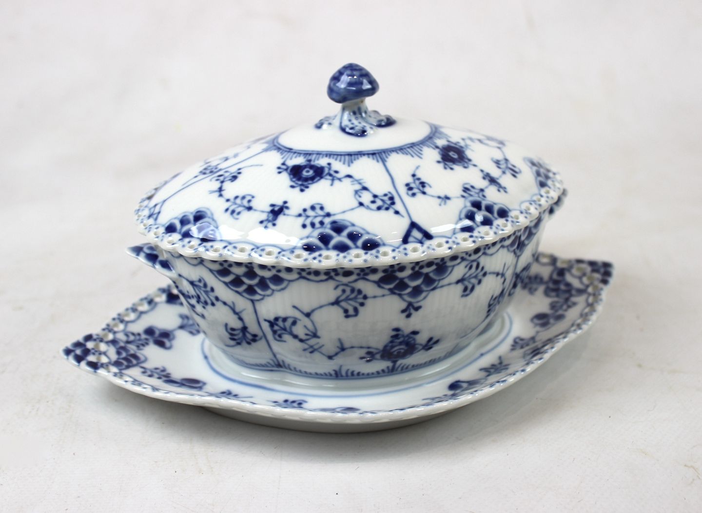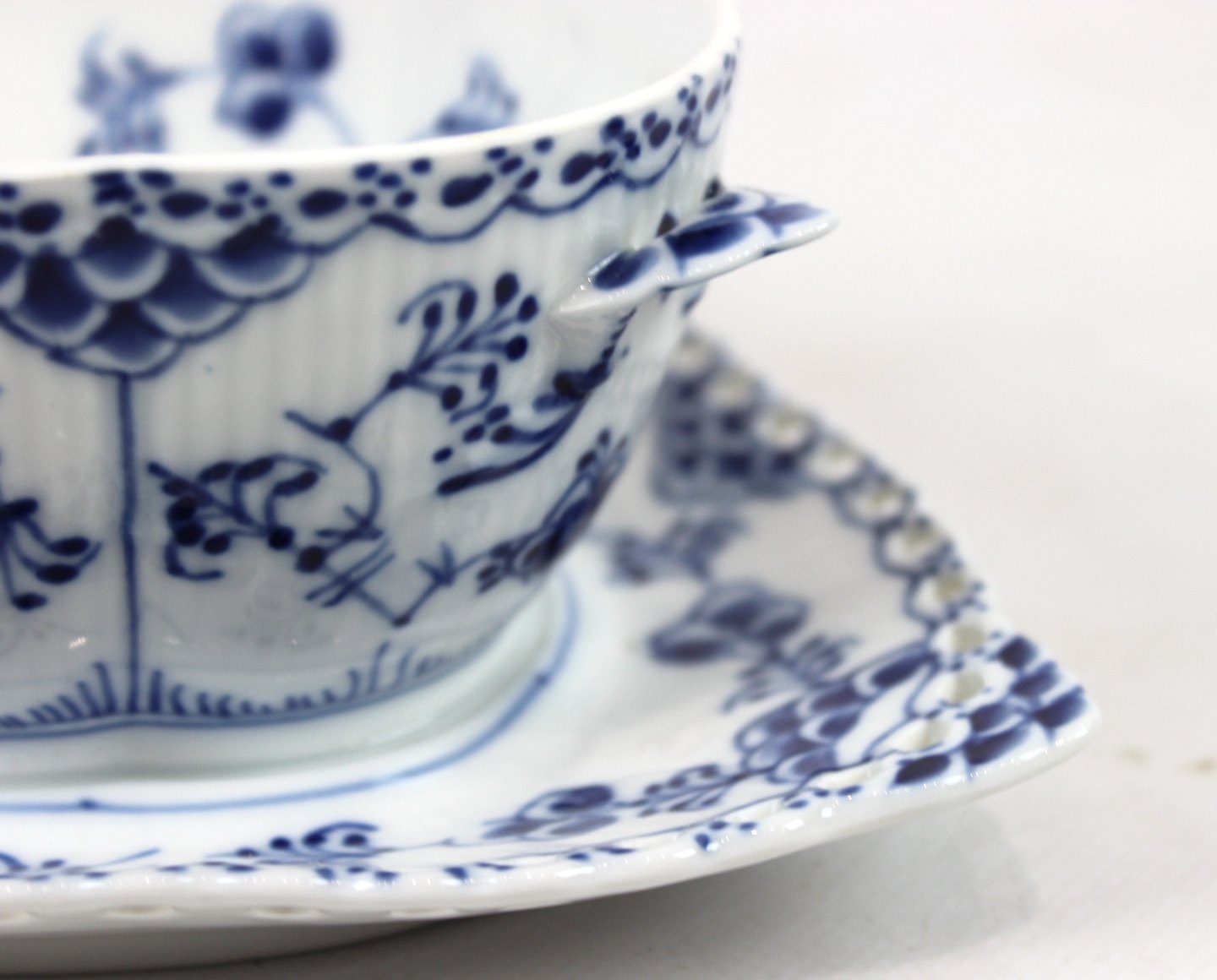 Royal Copenhagen blue fluted lace sauce-boat and saucer, no.: 1/1106.