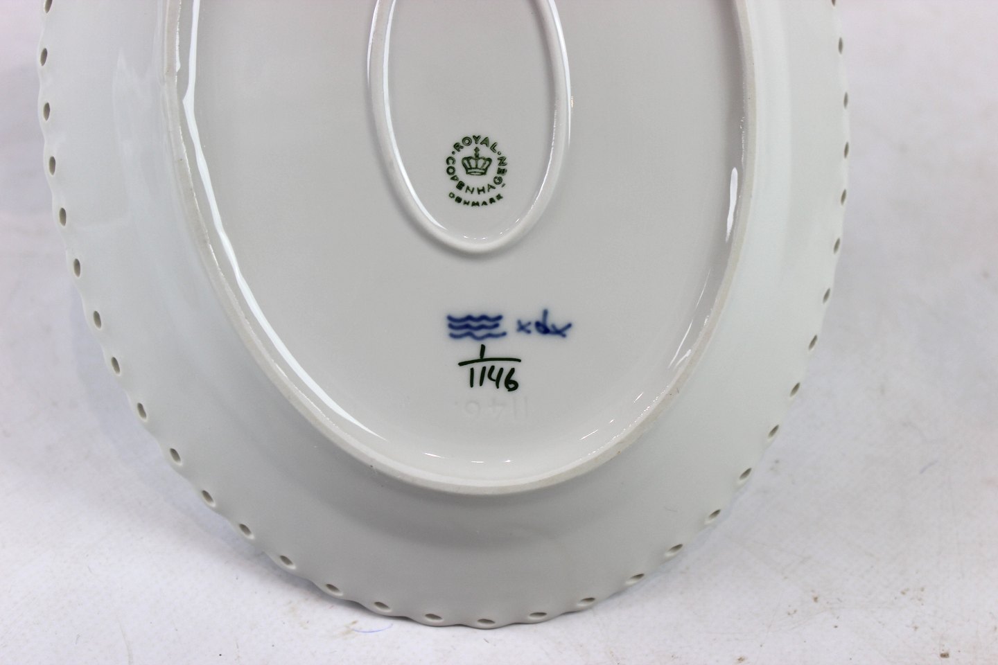 SolgtKgl. Musselmalet helblonde ovalt fad, nr.: 1/1146.
