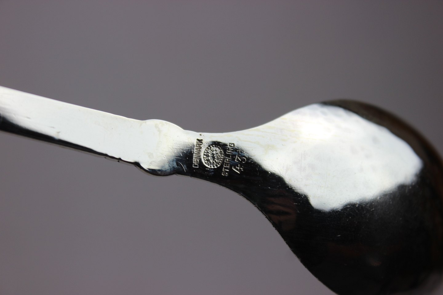 Server fork, no. 45, and marmeladespoon, no. 43, in other pattern by Georg Jensen. 675 DKK for each item