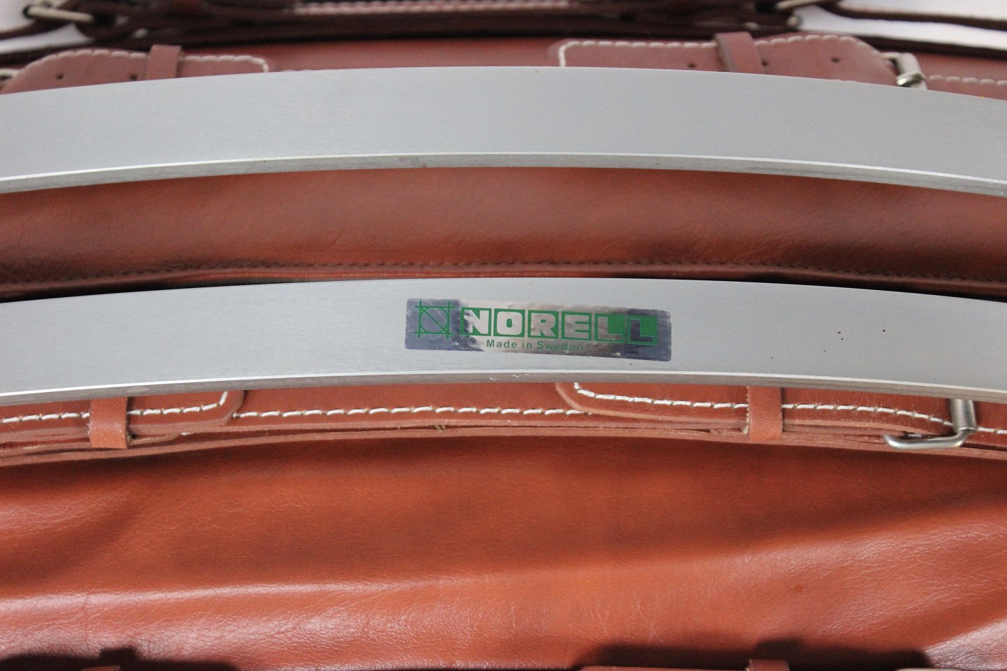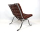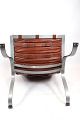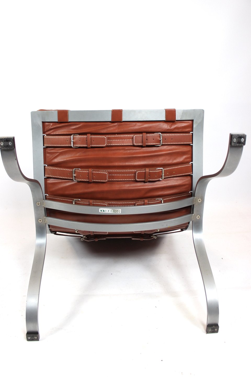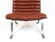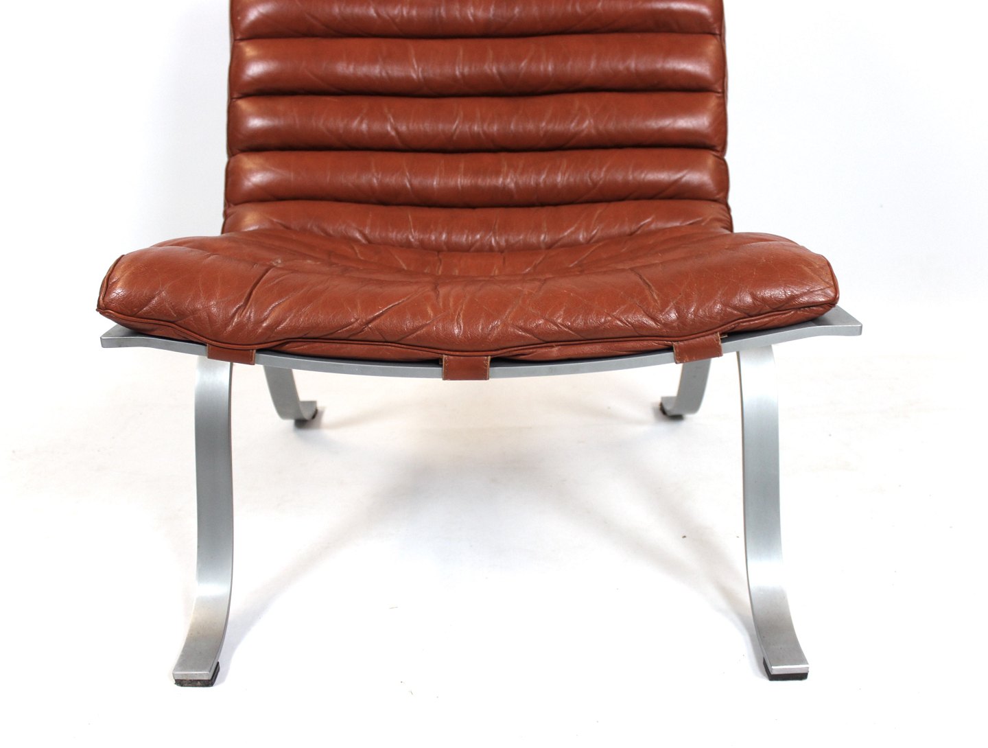 SolgtHvilestol, model Ariet, af rødt læder og stål stel designet af Arne Norell og fremstillet af Norell Møbler AB. Stolen er i flot brugt stand.
