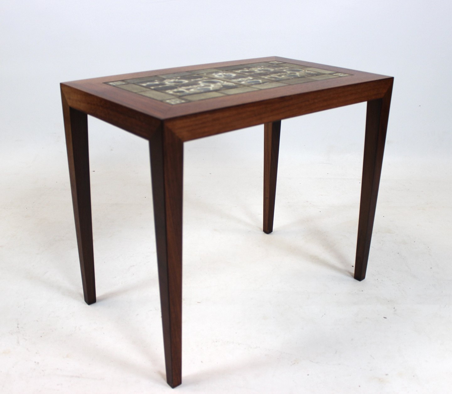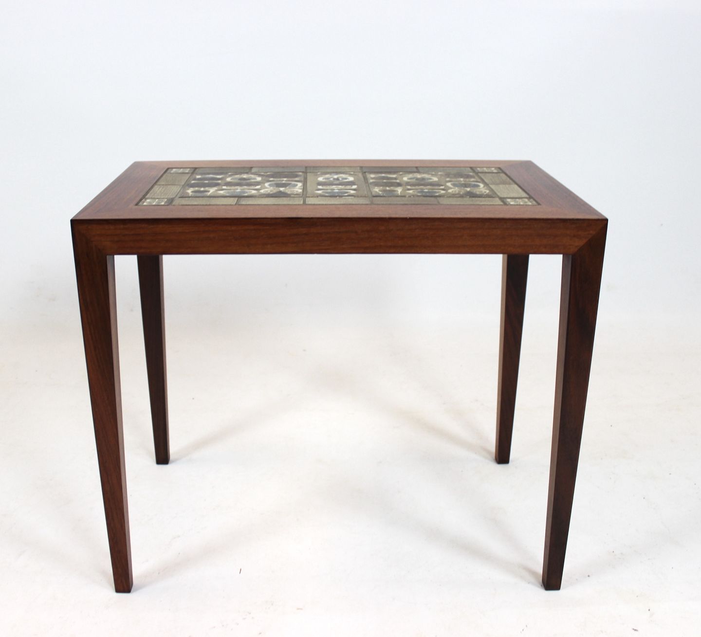 SolgtSidebord i palisander med kgl. brune kakler designet af Severin Hansen for Haslev Møbelfabrik fra 1960erne. Bordet er i flot brugt stand.