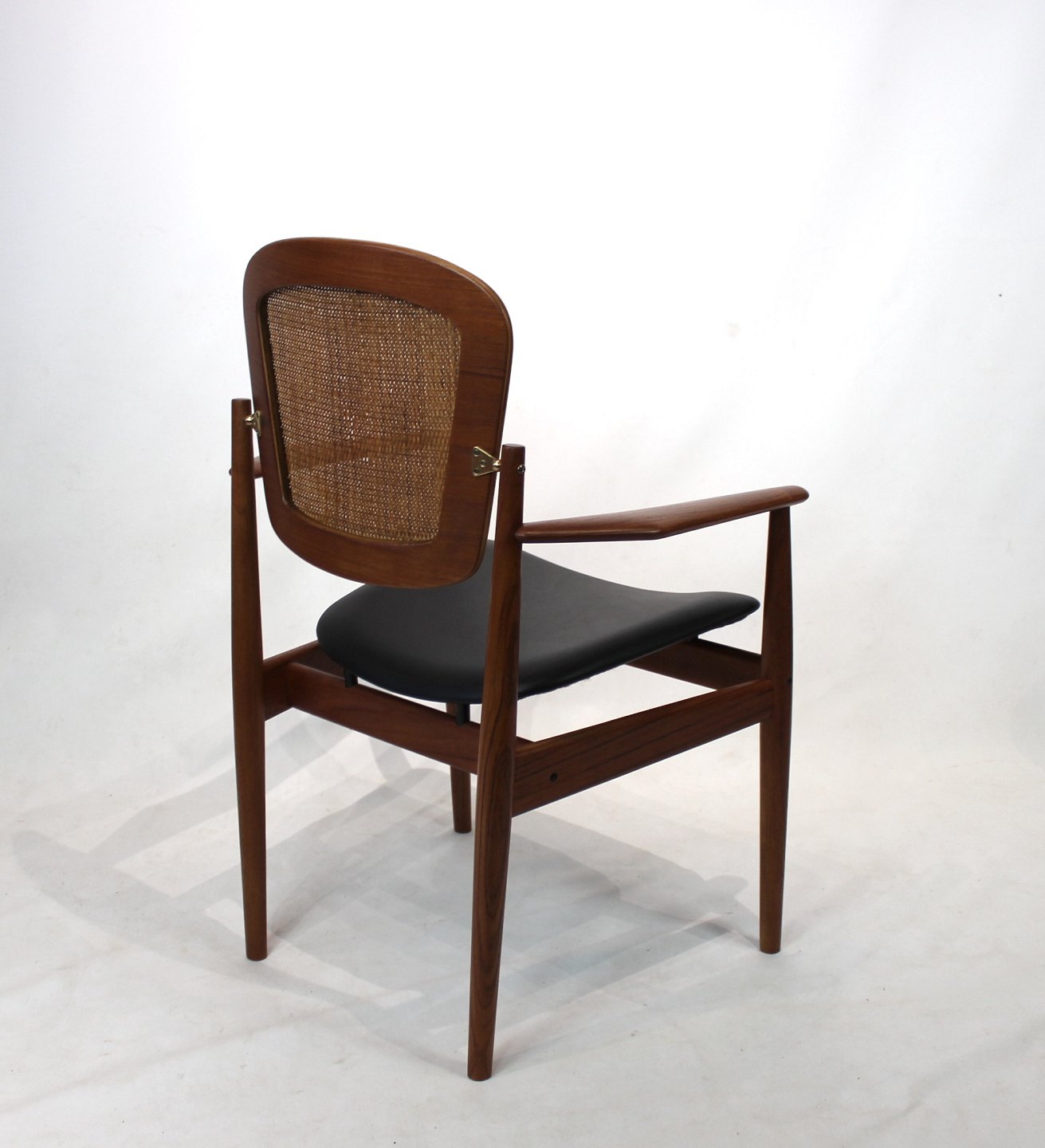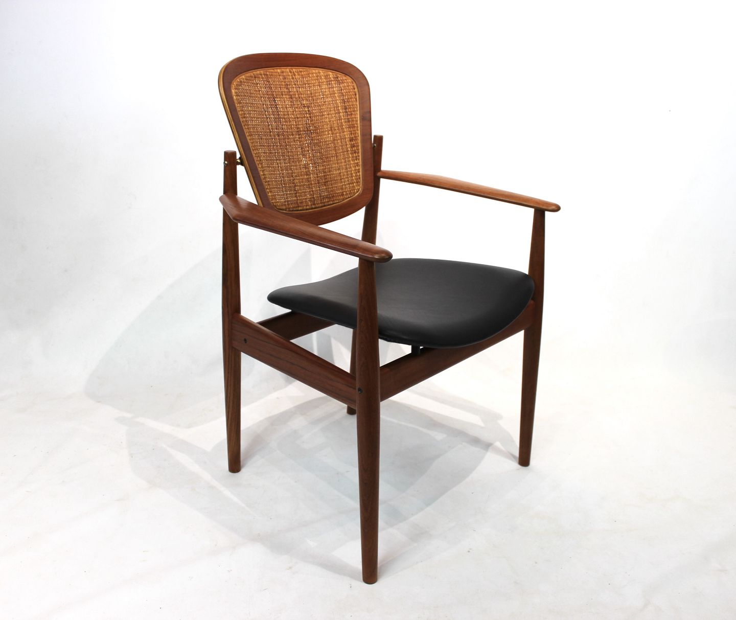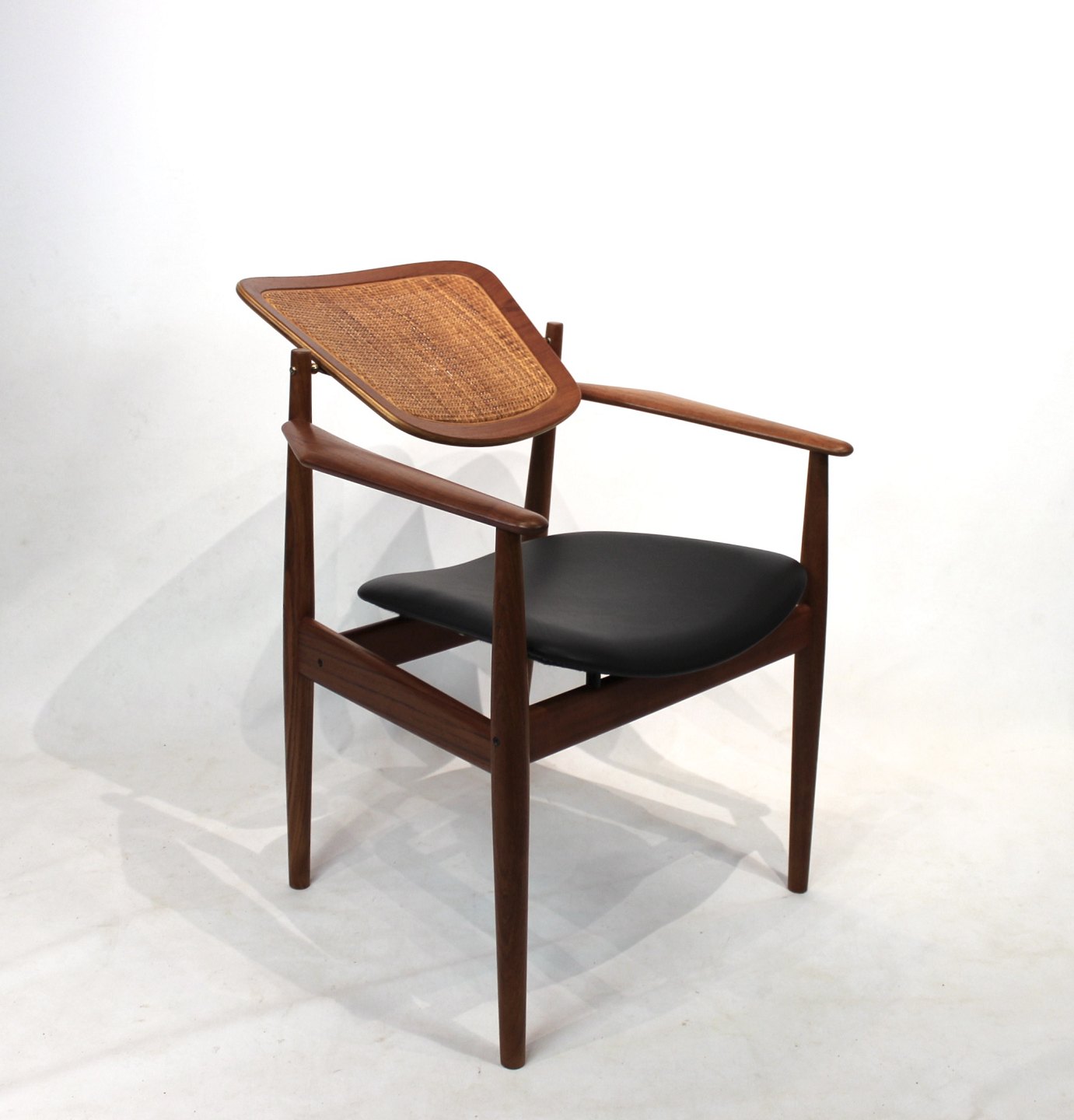 Armchair, model FD, designed by Arne Vodder and manufactured France & Son from the 1960s. The chair is of teak with seat of black leather and back of paper cord.