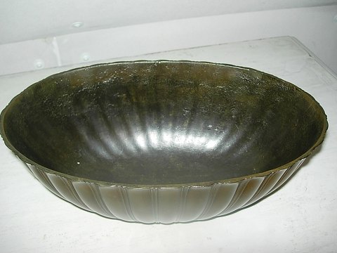 SolgtStor flot oval skål af Just Andersen Dk i disko-metal.Den er i meget fin stand.Den er 32cm i længden og 12cm i Højden