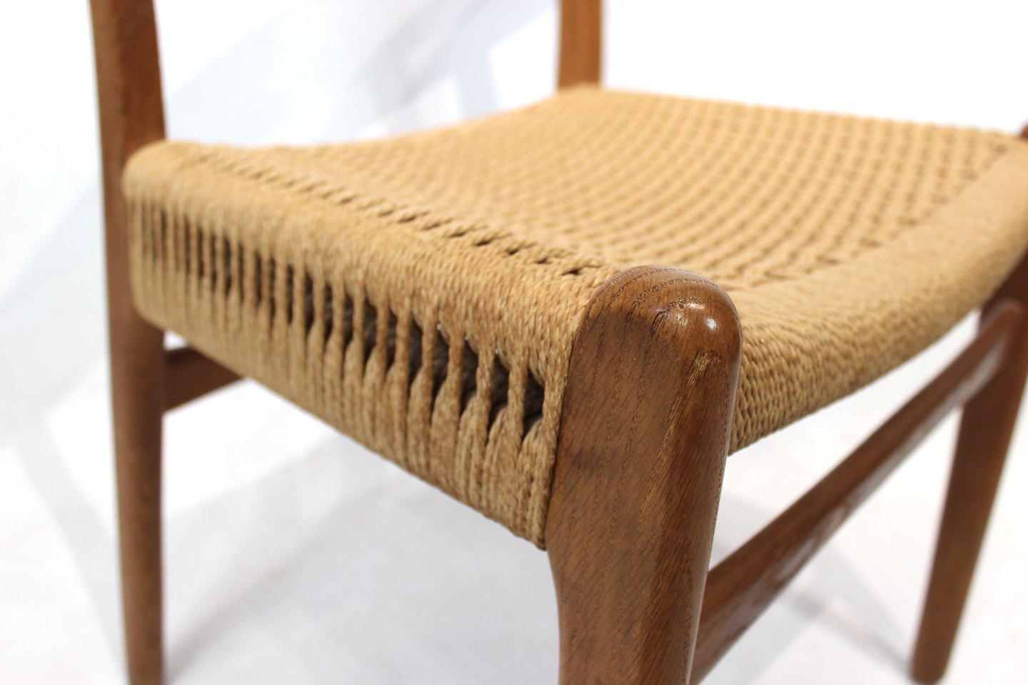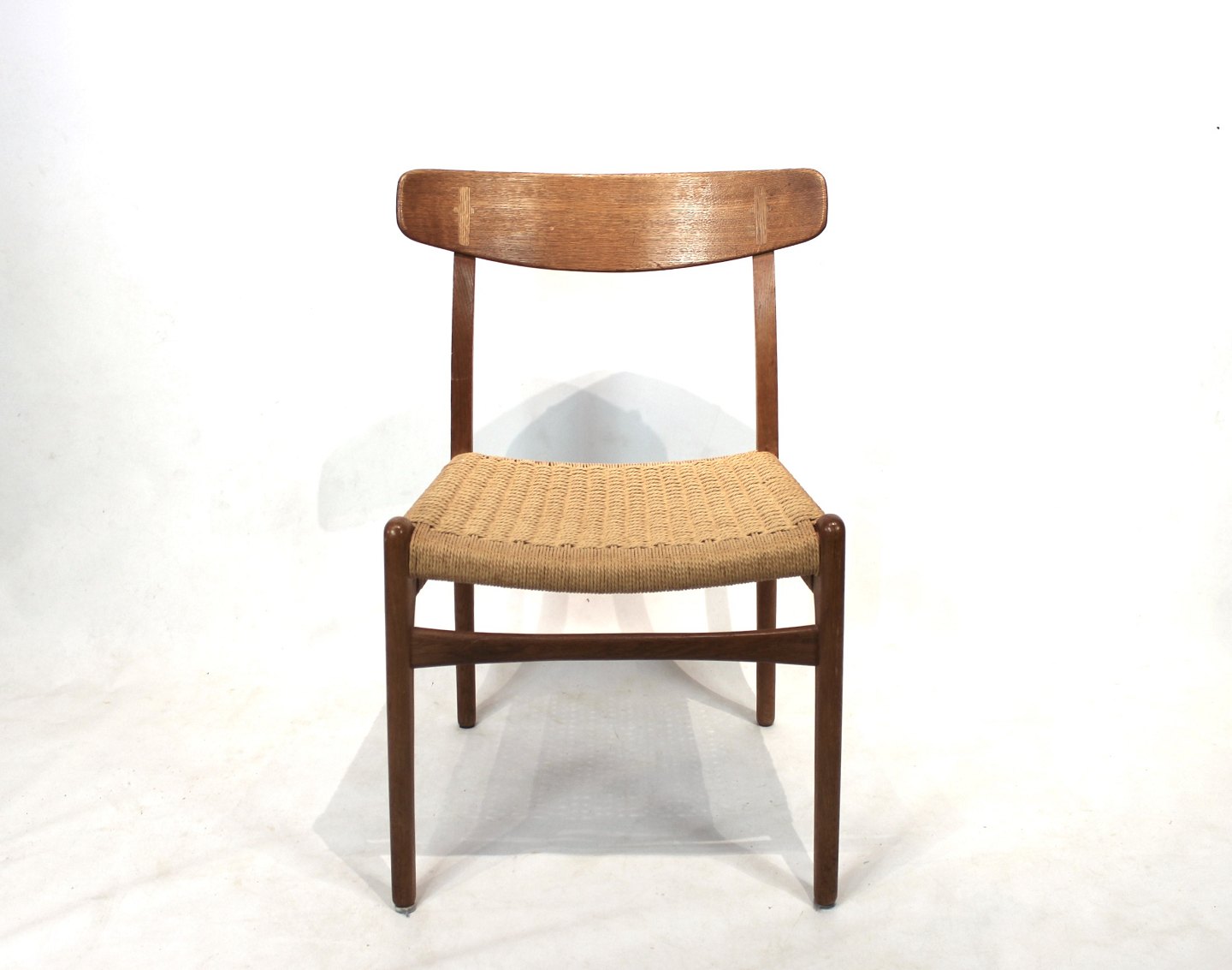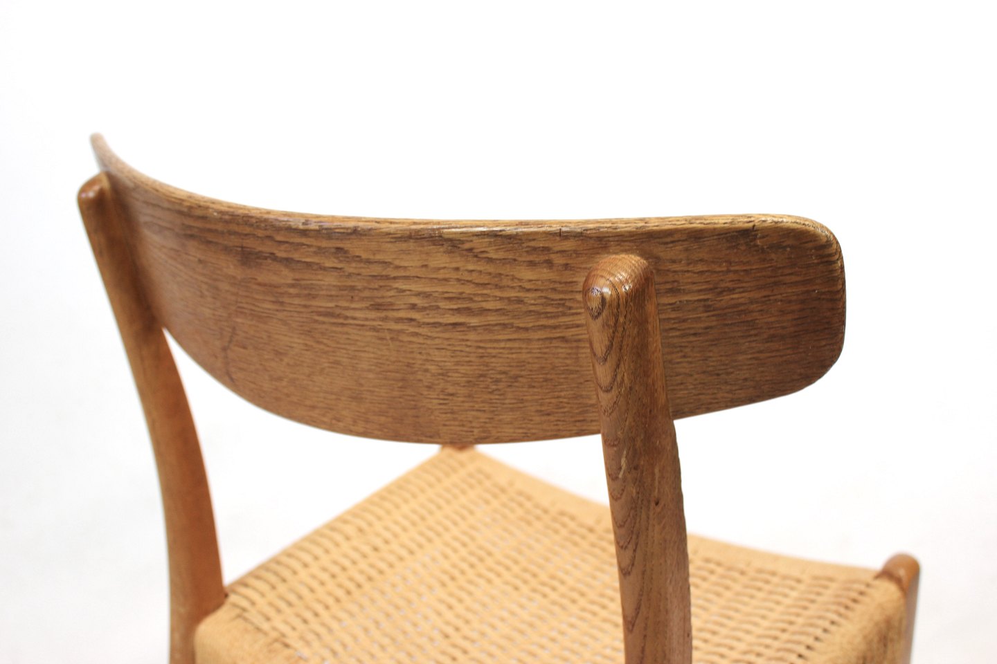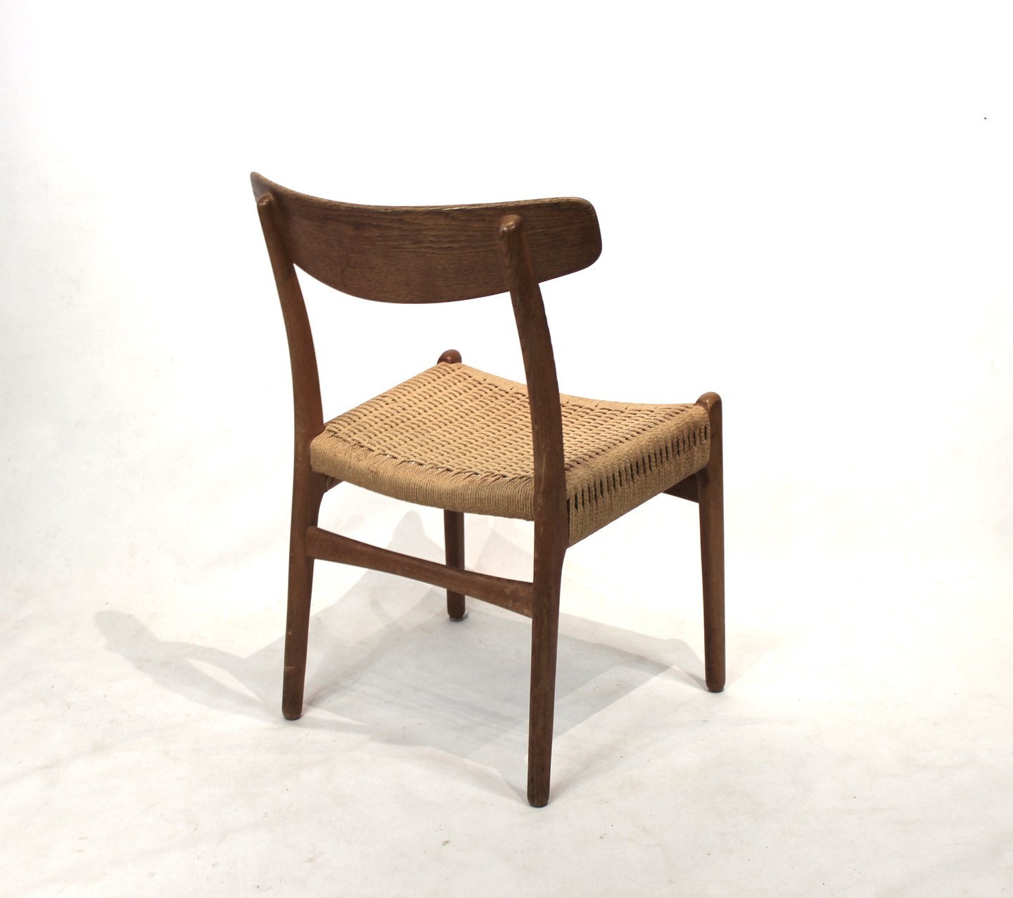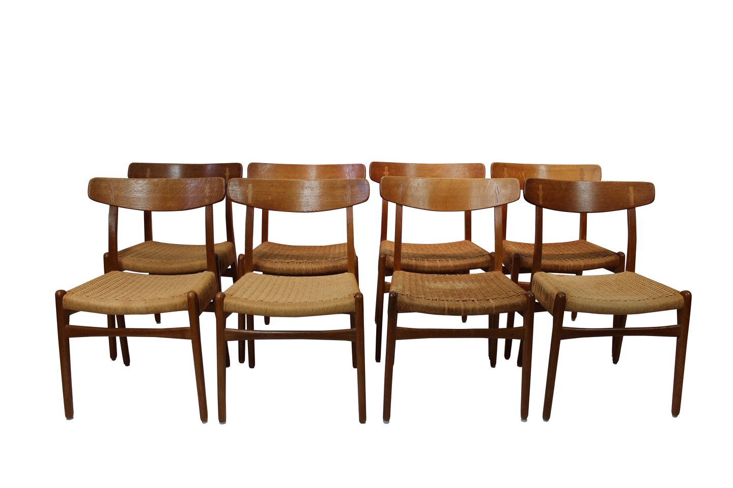 Set of 8 dining chairs, model CH23, designed by Hans Wegner in 1950 and manufactured by Carl Hansen & Son in the 1950s. The chairs are of oak, with seats of paper cord and are all in great vintage condition.