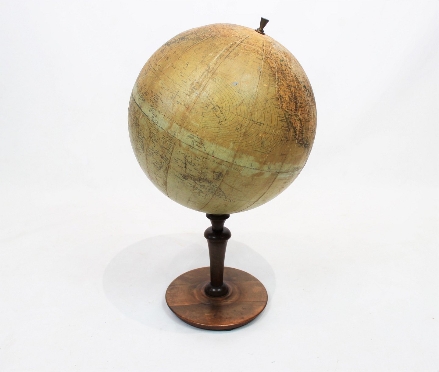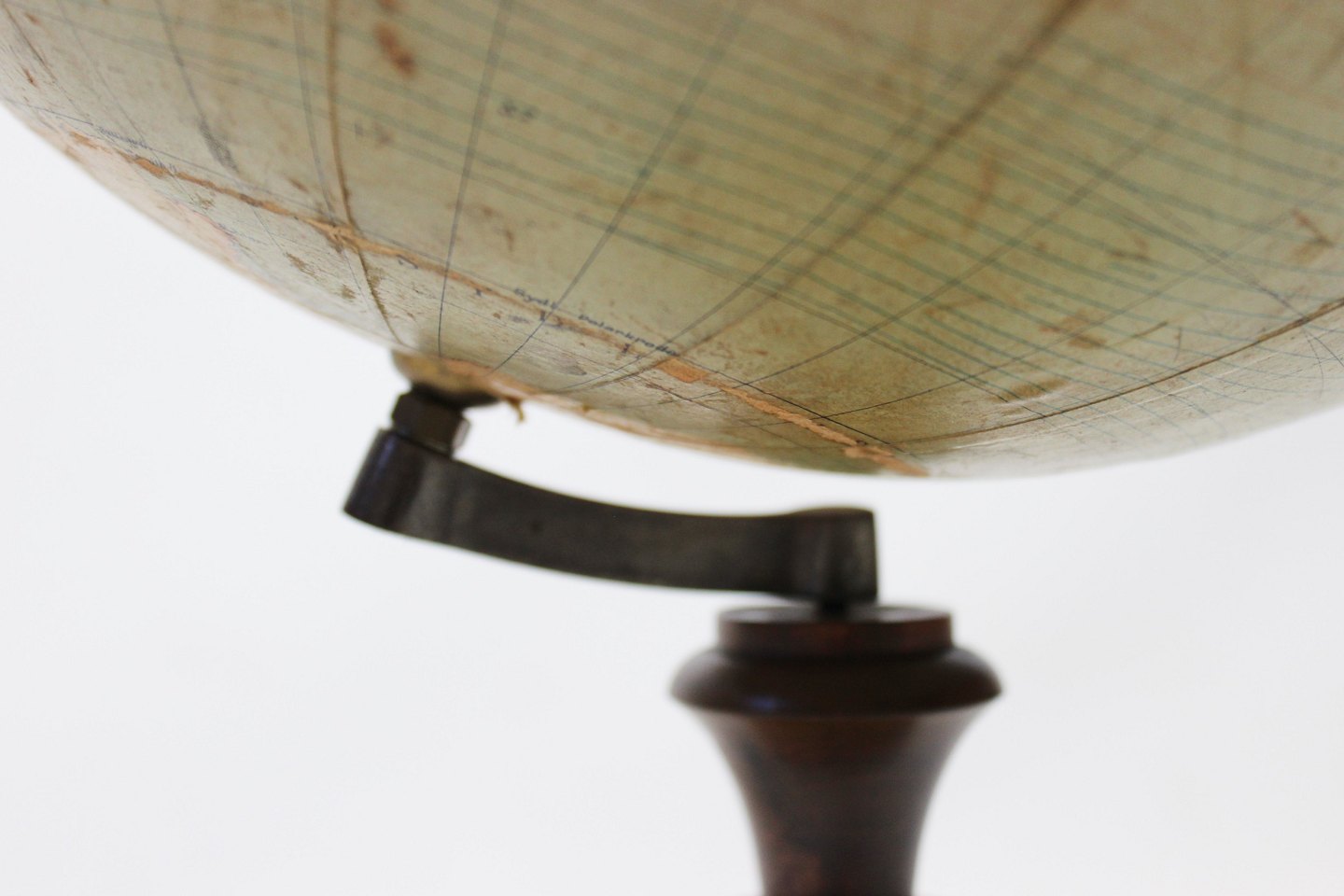 SolgtAntik globus med stel af poleret træ og messing fra 1940erne. Globussen er i flot antik stand.