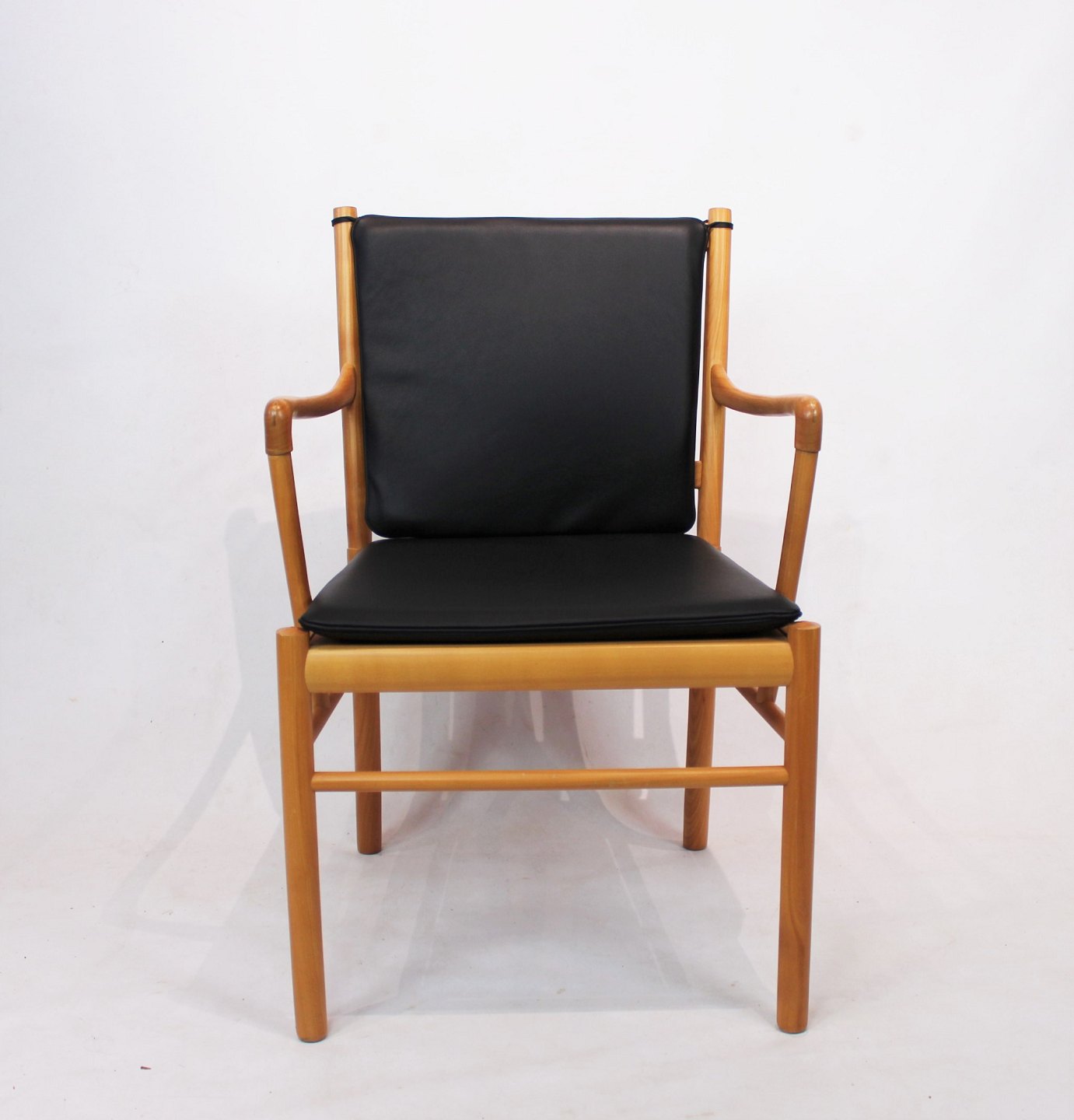 Ole Wanscher is known for his ability to combine classic elegance with functional simplicity, and model PJ-301 is no exception. The chair has a timeless aesthetic with clean lines and a pleasant sitting comfort that makes it suitable for both living rooms and offices. The cherry wood's rich color and fine grain patterns complement the black leather perfectly, resulting in a harmonious and stylish chair.