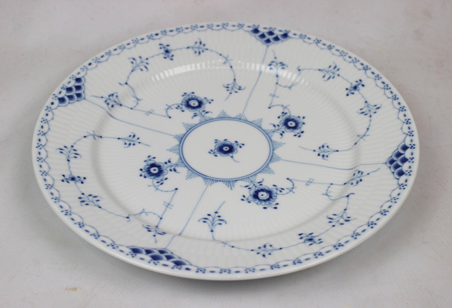 SoldRoyal Copenhagen blue fluted lace dinner plate, no.: 627. Ask for number in stock.