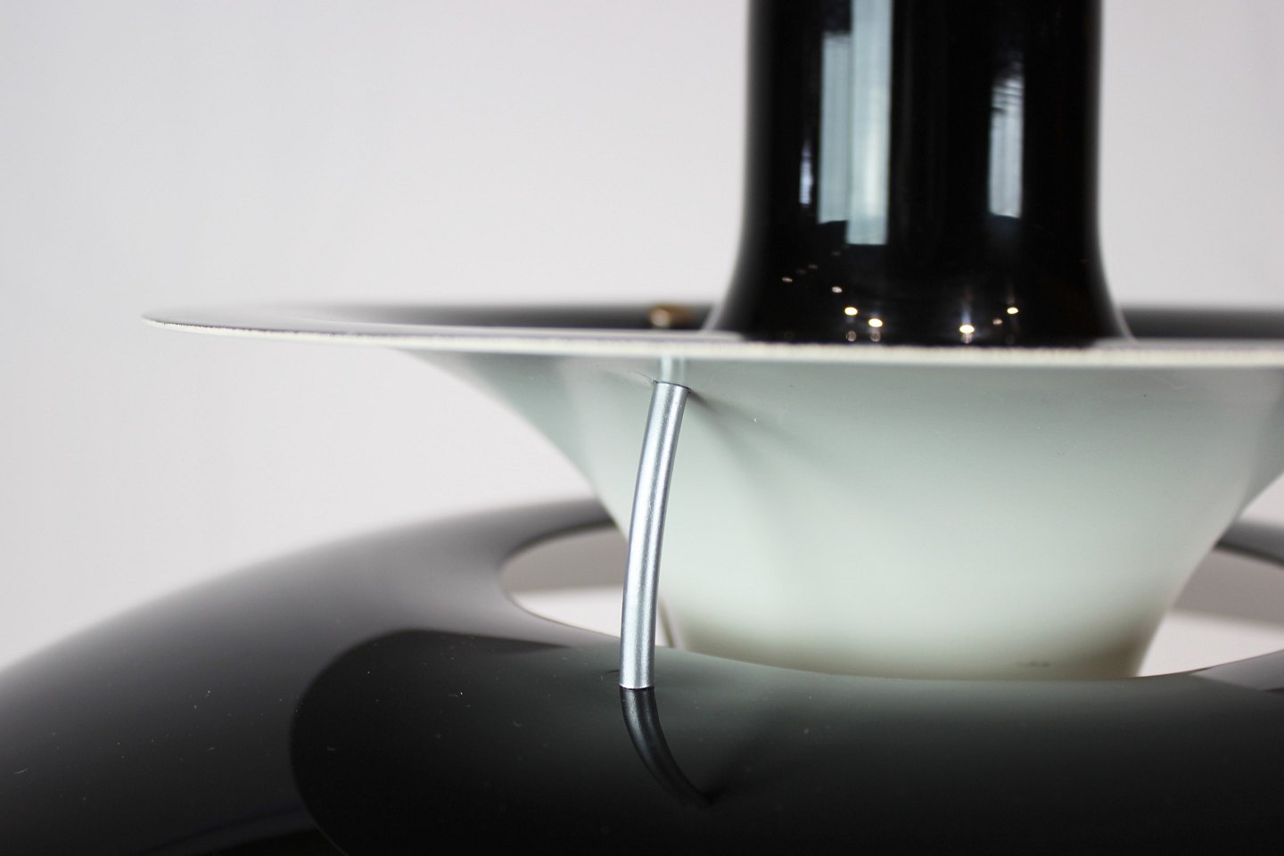 SoldPH5 lamp designed by Poul Henningsen in 1958 and manufactured by Louis Poulsen. The lamp has lacquered metal shades in black, red and white, and is a newer model.