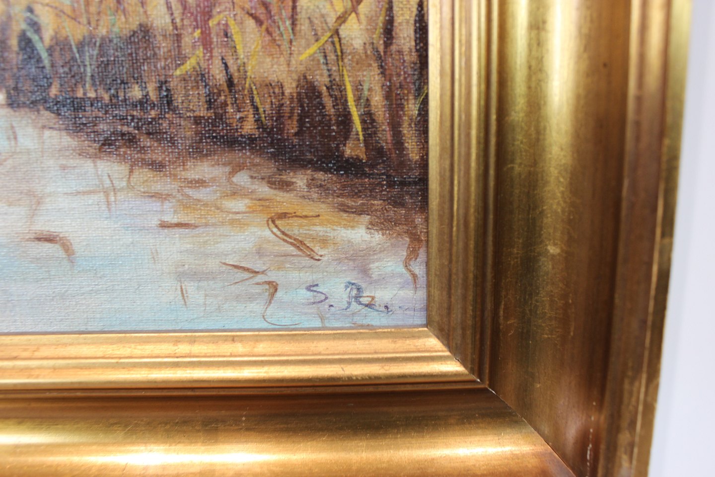 Maleri med natur motiv og guld ramme signeret S.R. Maleriet er flot brugt stand.