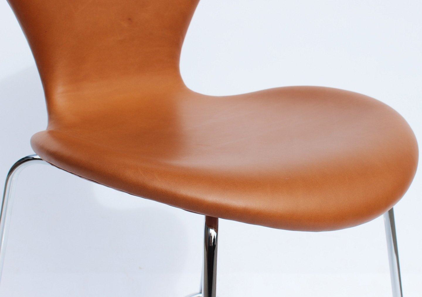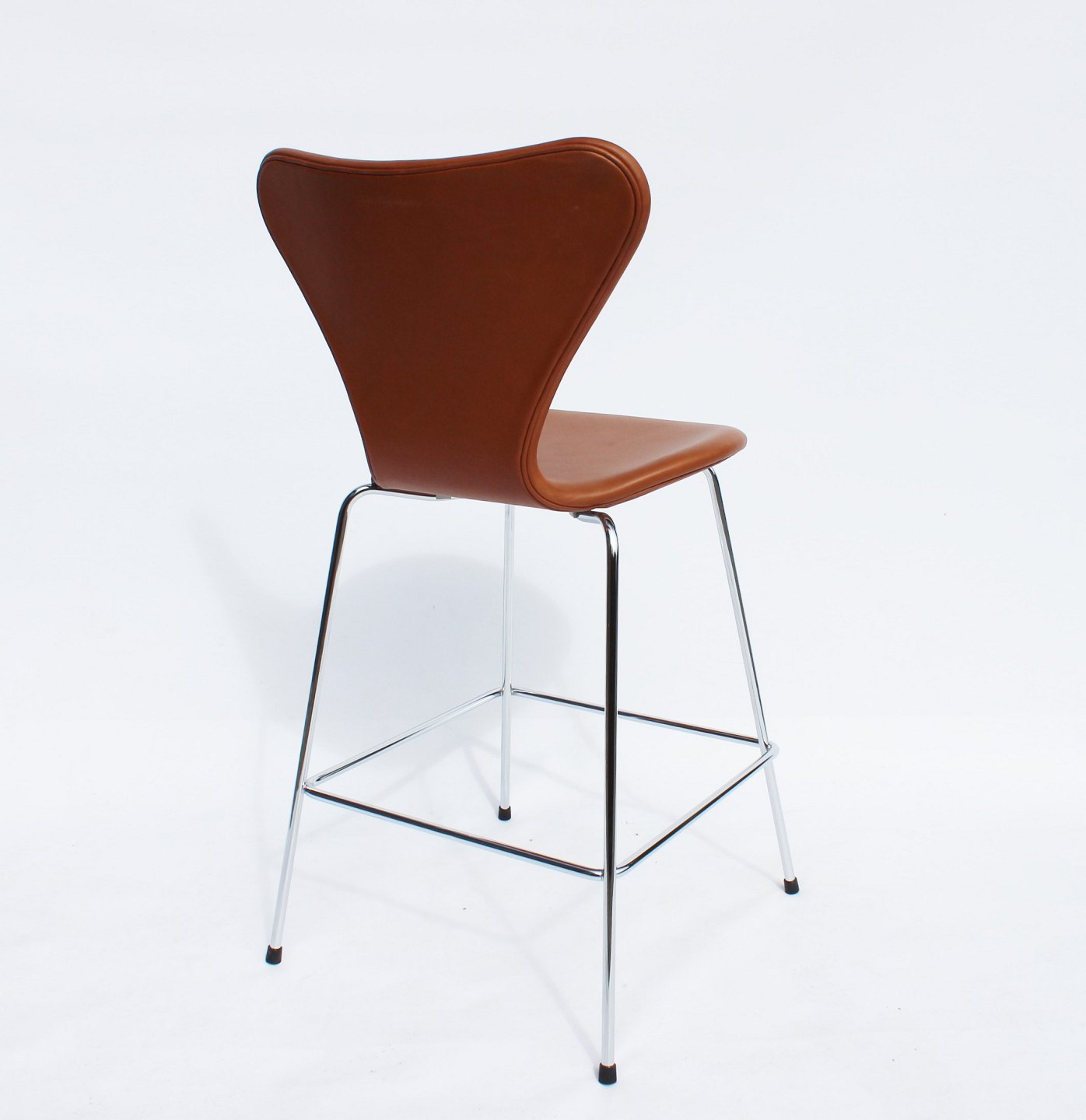 SoldA pair of Seven bar stools, model 3187, with walnut elegance leather designed by Arne Jacobsen and manufactured by Fritz Hansen in 2019. The chairs are in excellent condition.