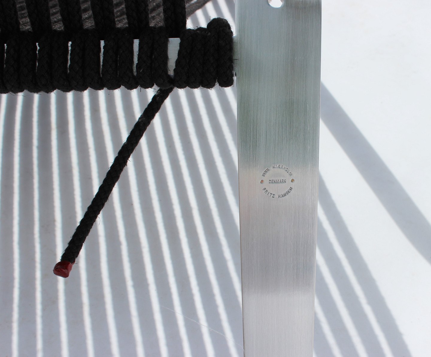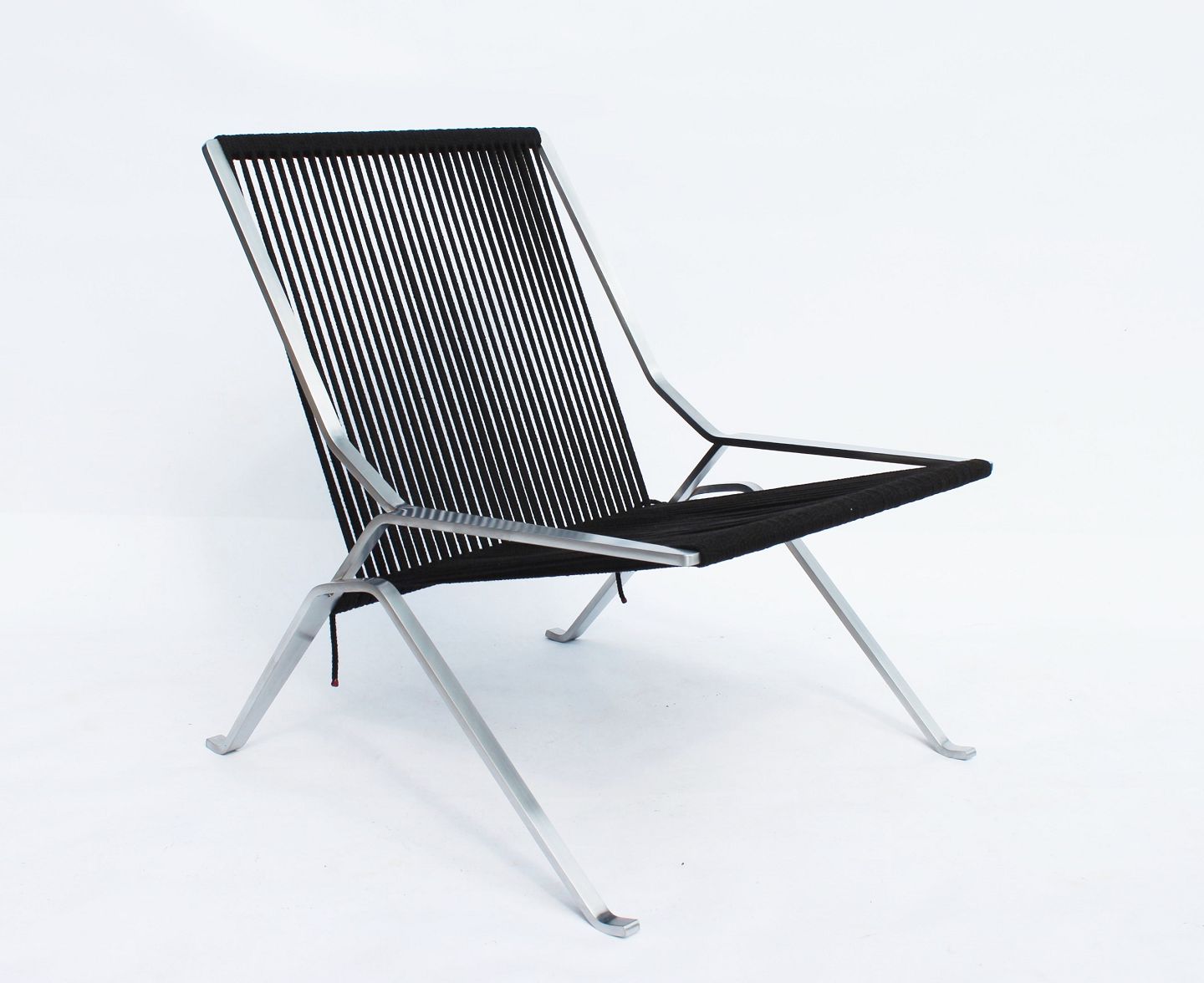 SolgtElement stolen, model PK25, designet af Poul Kjærholm i 1951 og fremstillet af Fritz Hansen i 2014. Stolen er matforkromet fjederstål og flagline, og er i meget flot stand.