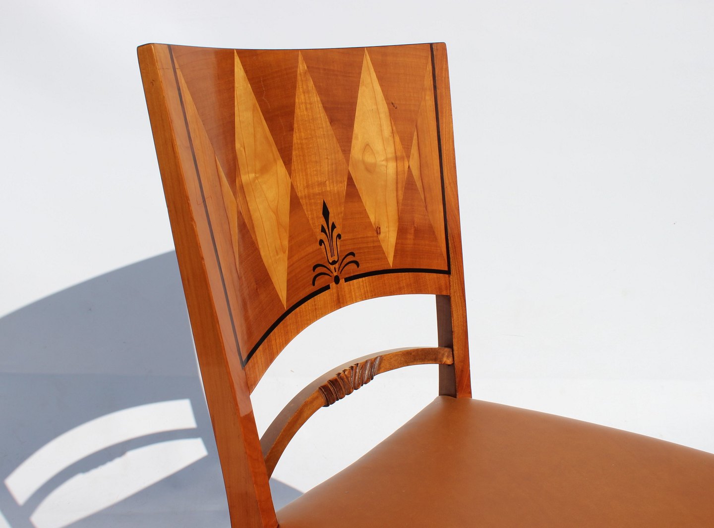 Every element of these chairs, from the beautifully carved wooden details to the luxurious leather upholstery, shows a true sense of quality and aesthetics. Their timeless design makes them suitable for a variety of interior styles and is sure to add a sense of elegance and warmth to any dining area.
