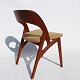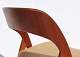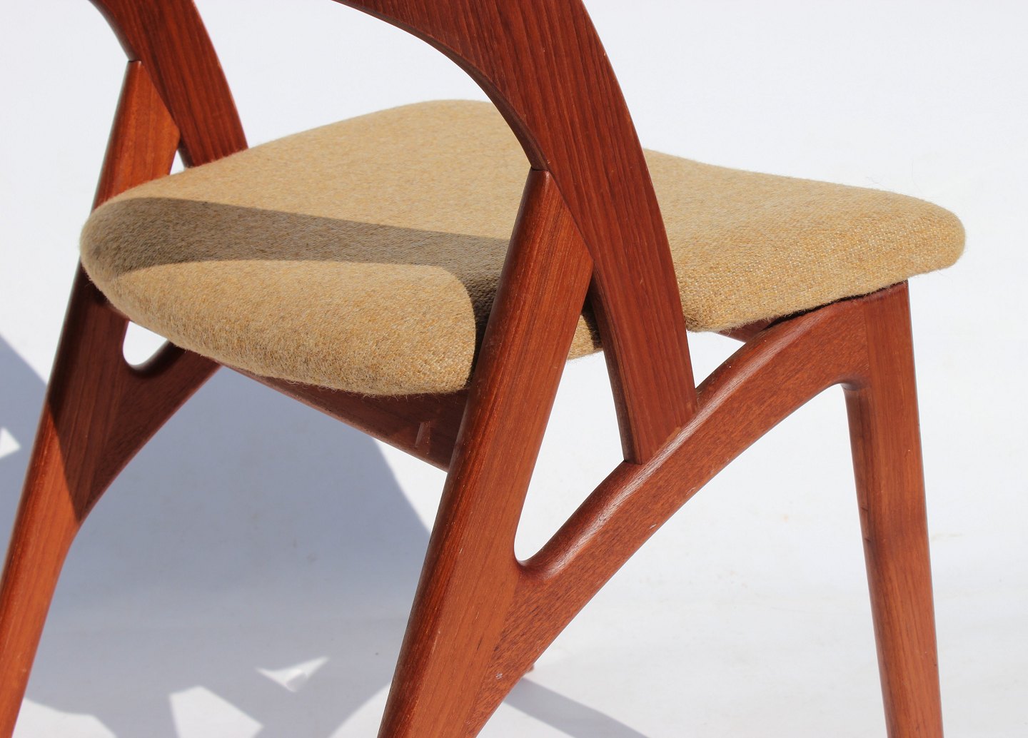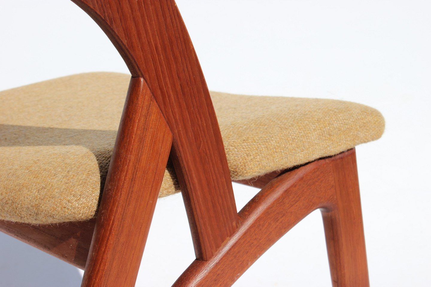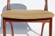 Et sæt af seks spisestuestole i teak og lyst stof af dansk design fra 1960erne.