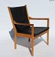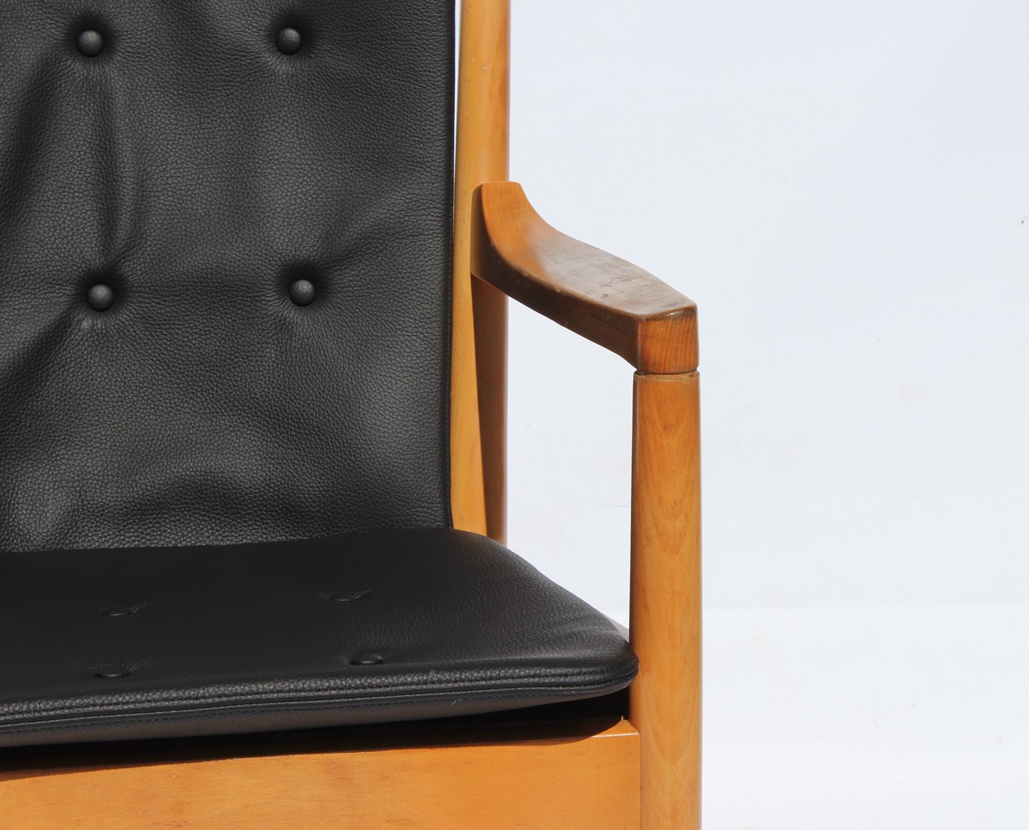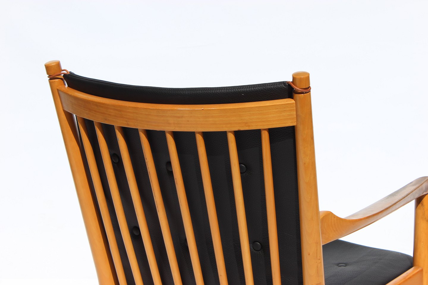 The armchair, known as model 1788, is an elegant piece of furniture with an iconic wooden back in beech wood and cushions upholstered in black leather. Designed by the renowned Danish architect and furniture designer Hans J. Wegner in 1978 and produced by Fritz Hansen, this chair combines aesthetics and functionality in a unique way.