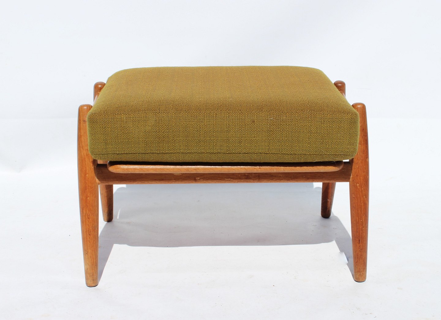 SolgtSkammel til Cigaren, model GE240, af egetræ og grønt uldstof designet af Hans J. Wegner og fremstillet af Getama i 1960erne. Skamlen er i flot stand.