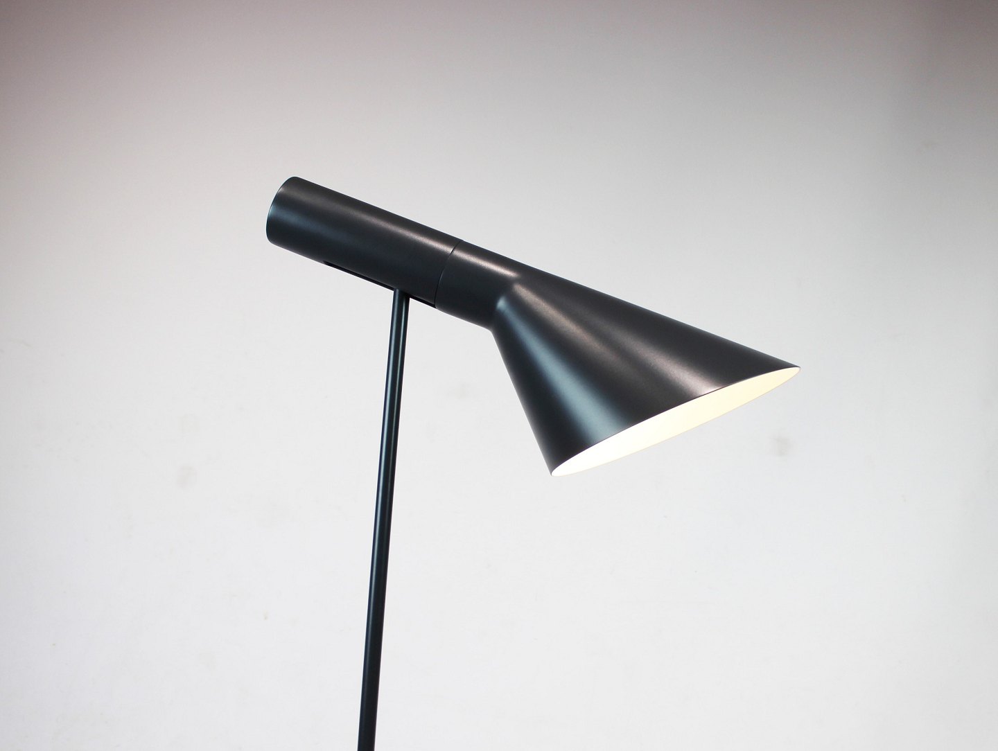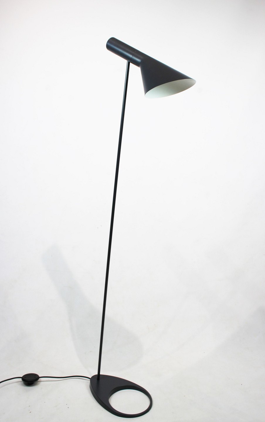 SoldDark grey floor lamp desgined by Arne Jacobsen in 1957 and manufactured by Louis Poulsen. The lamp is a show model and is therefore in great used condition.
