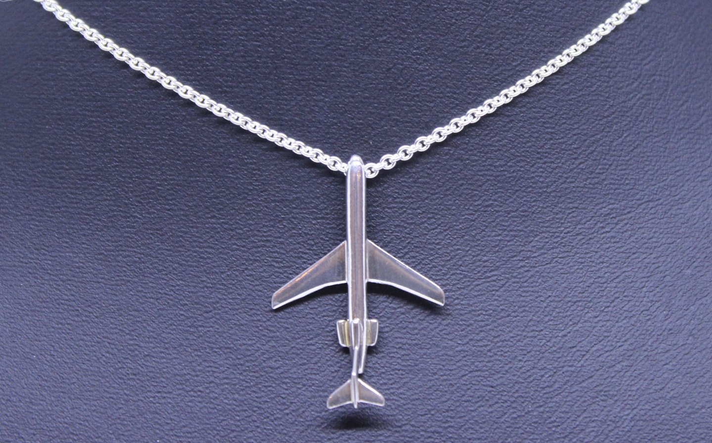 Halskæde med vedhæng i form af fly, af 925 sterling sølv.