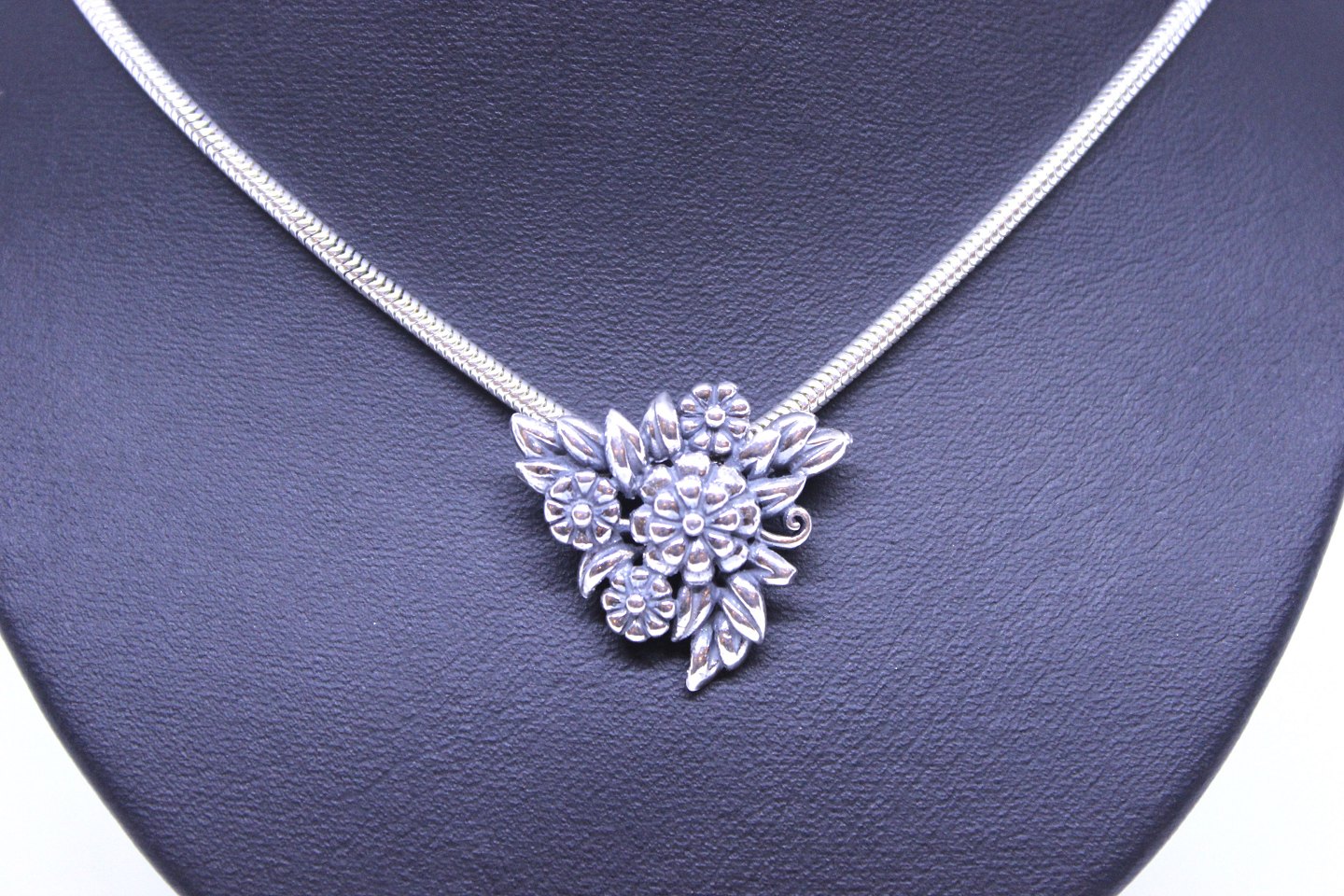 SolgtHalskæde med vedhæng i form af en blomst, af 925 sterling sølv.
