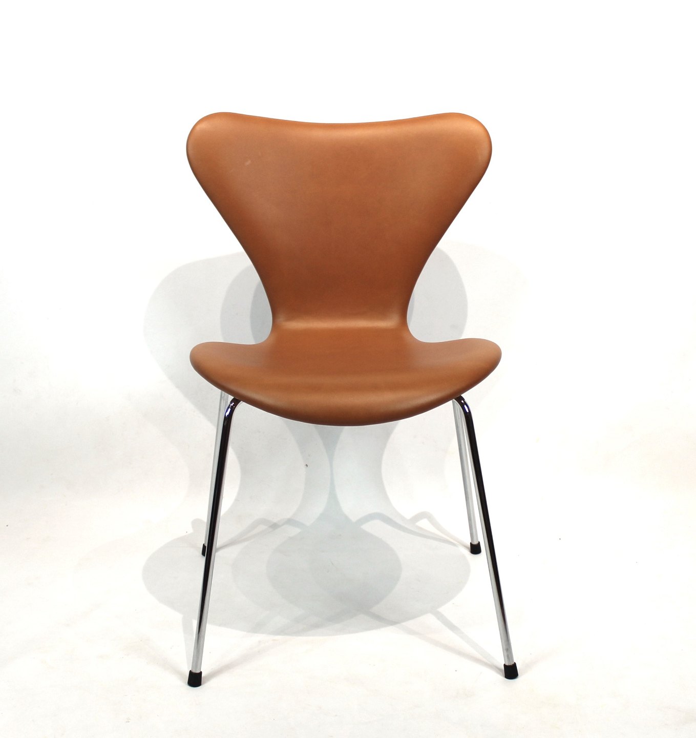 Dette sæt på fire Syver stole, også kendt som model 3107, er et fremragende eksempel på tidløst dansk design, skabt af den legendariske designer Arne Jacobsen og fremstillet af Fritz Hansen.