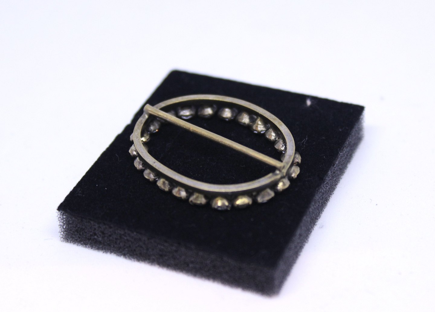 Oval broche med zirkoner.