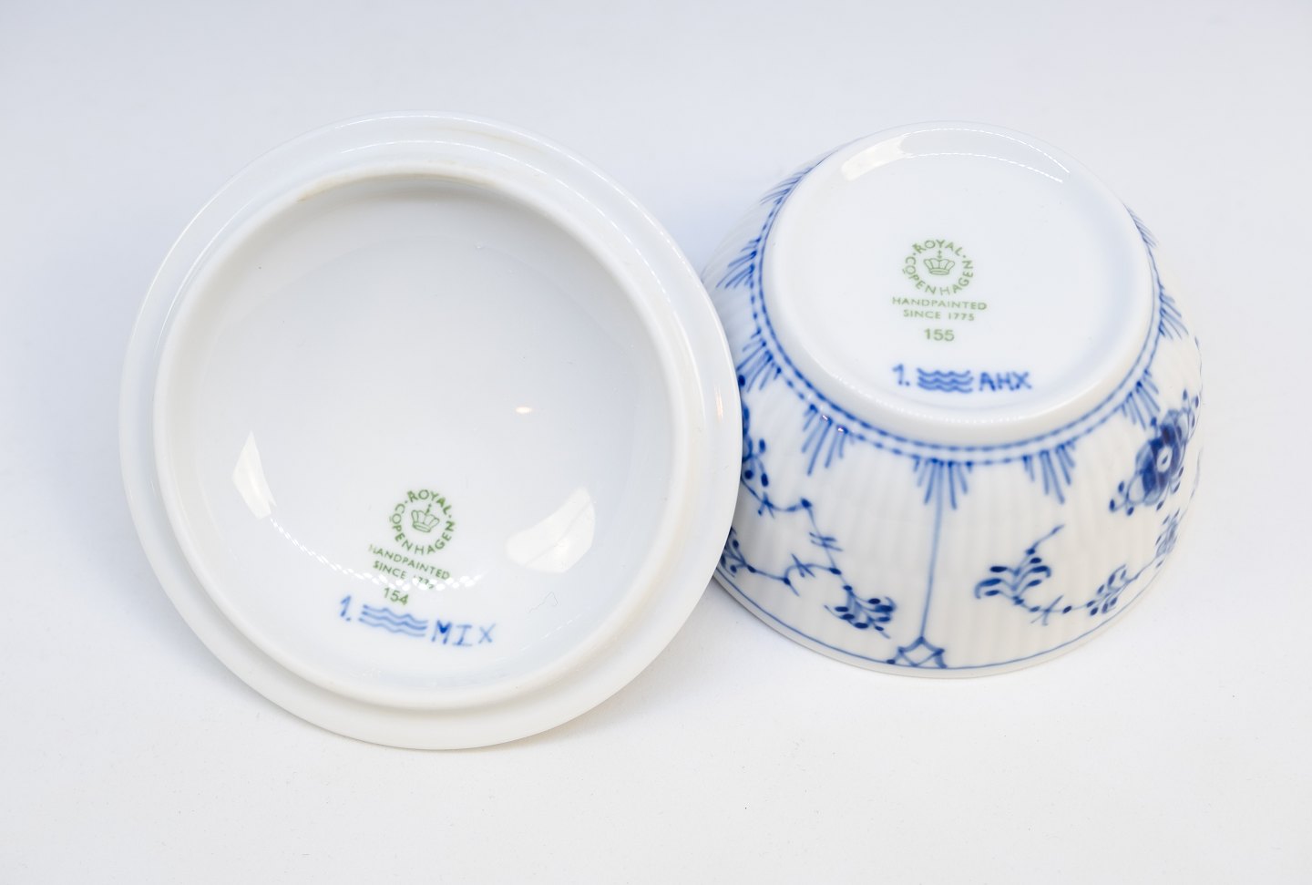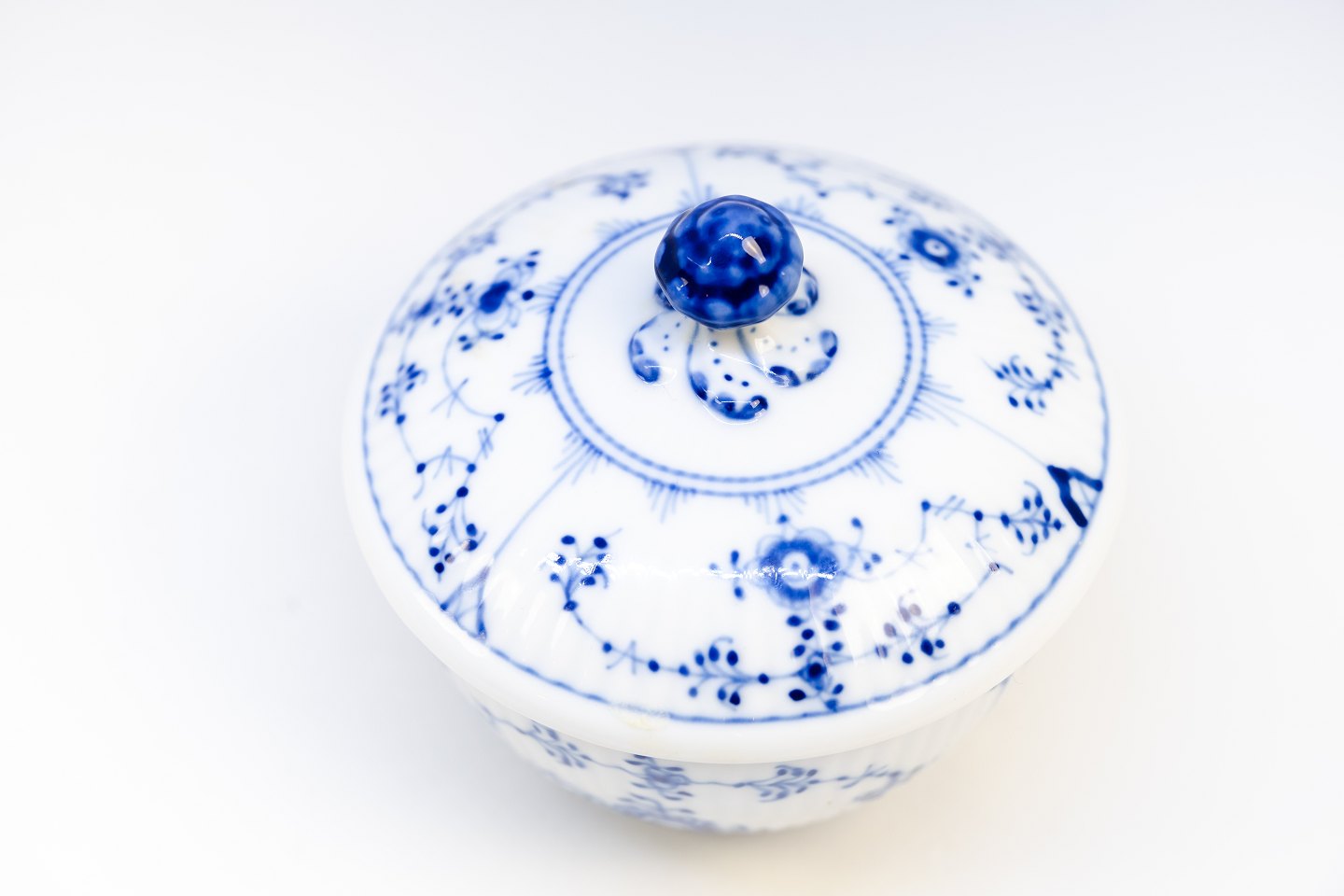 Kgl. musselmalet riflet sukkerskål, nr.: 155, af Royal Copenhagen.