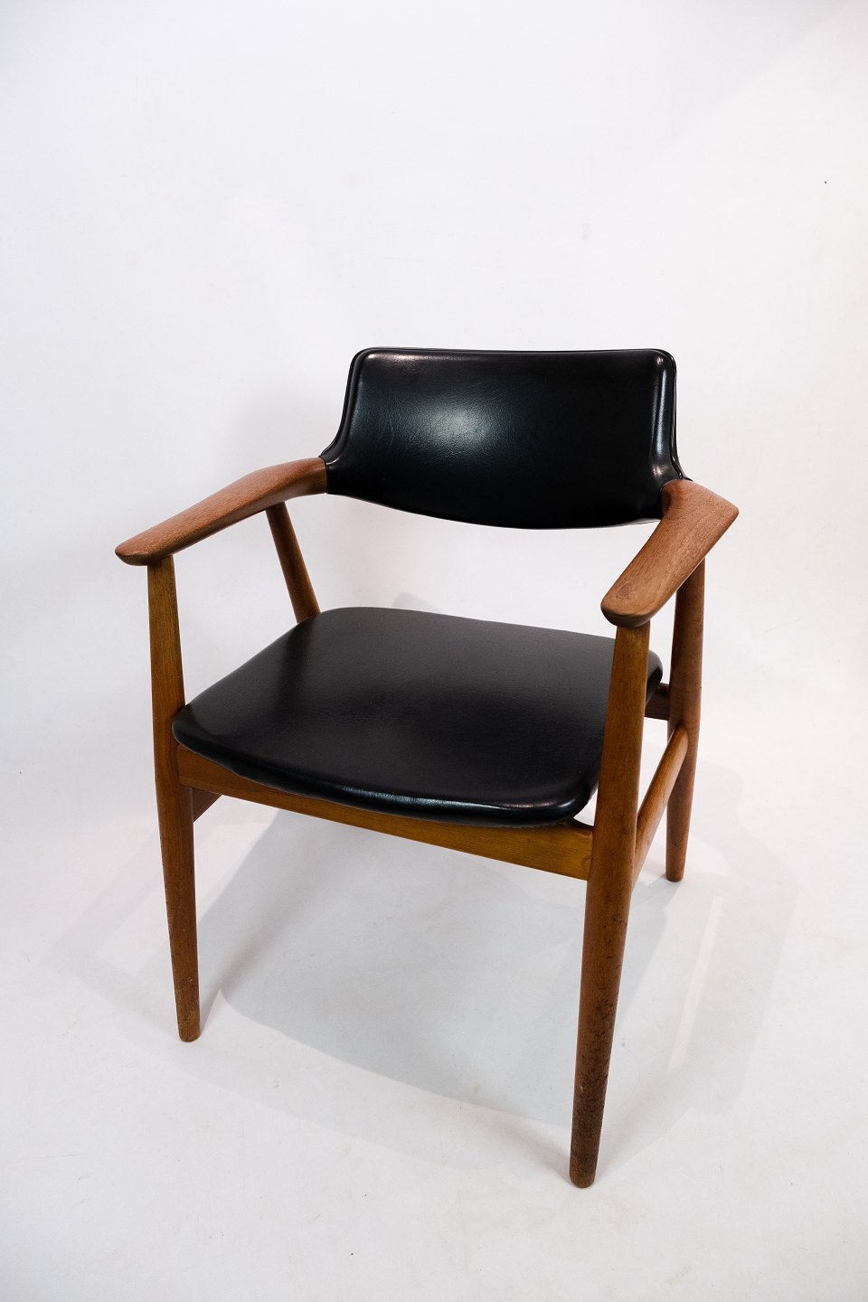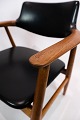 Armstol i teak og sort læder designet af Erik Kirkegaard og fremstillet af Glostrup Møbelfabrik i 1960erne. Stolen er i flot brugt stand.
