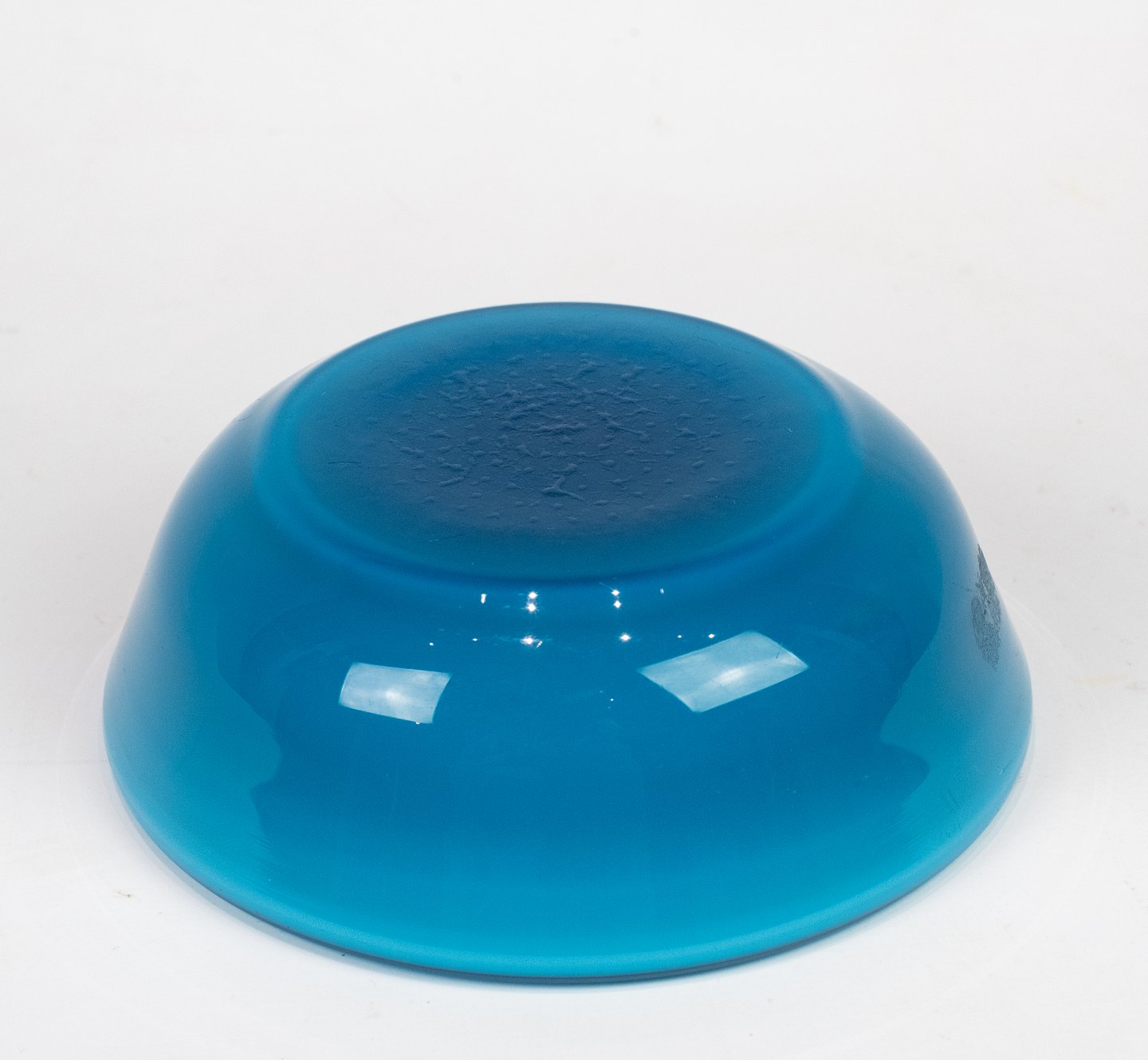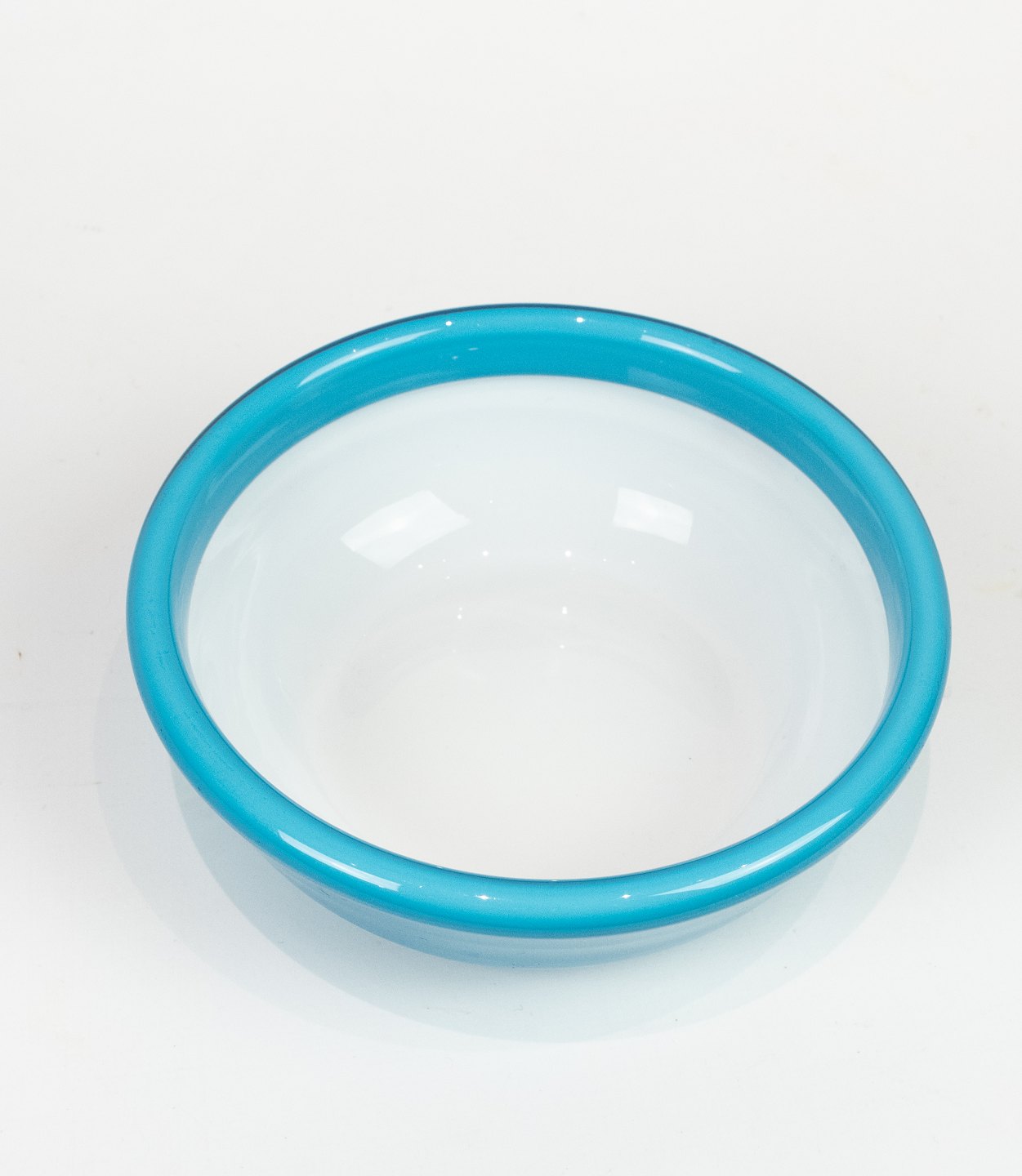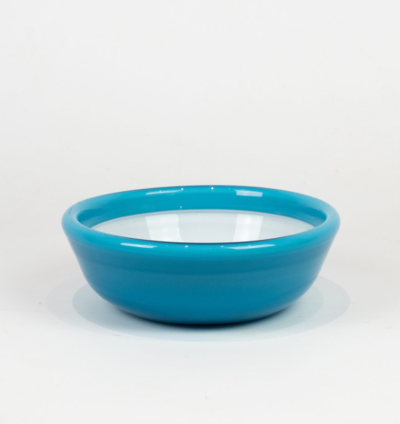 Blue glass bowl with white opaline glass on the inside from the Palet series by Michael Bang for Holmegaard.