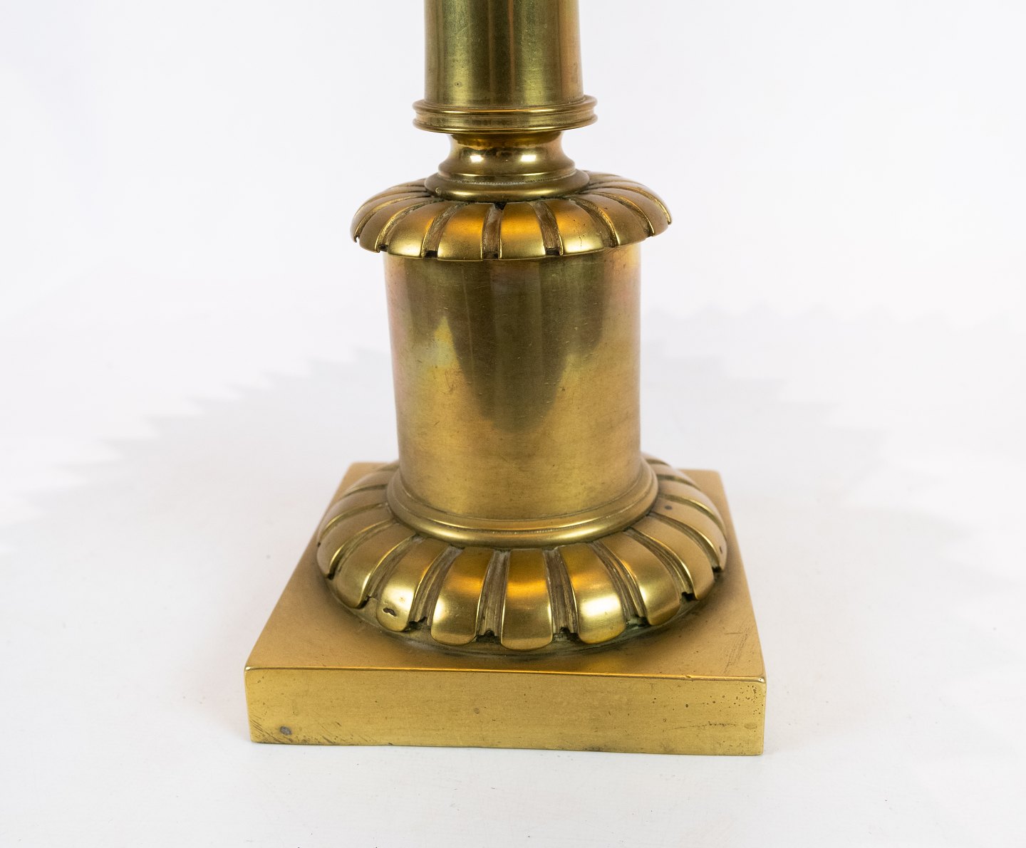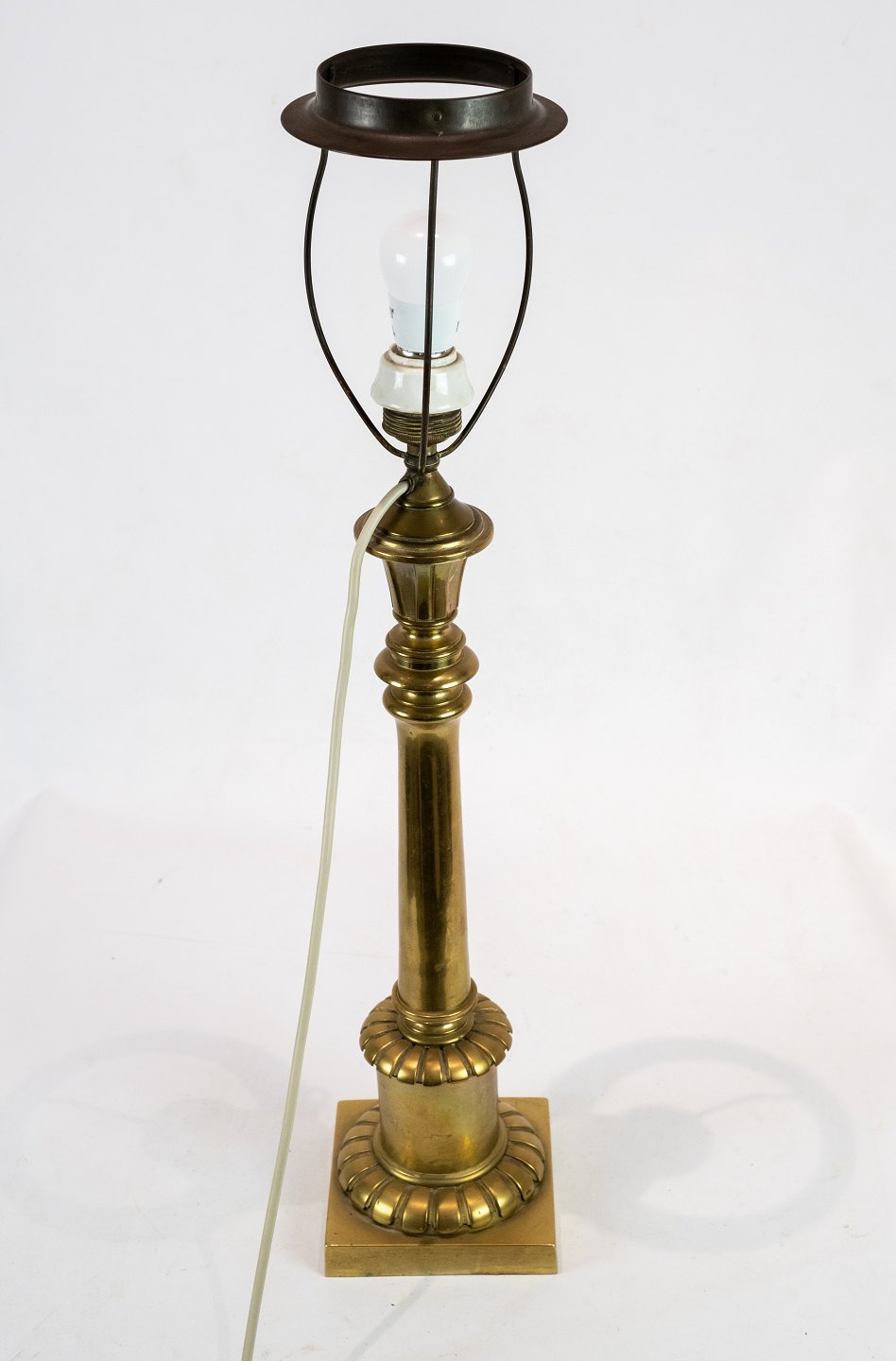 Tall table lamp in brass from the 1920s. The shade is handpainted and hand folded in paper.